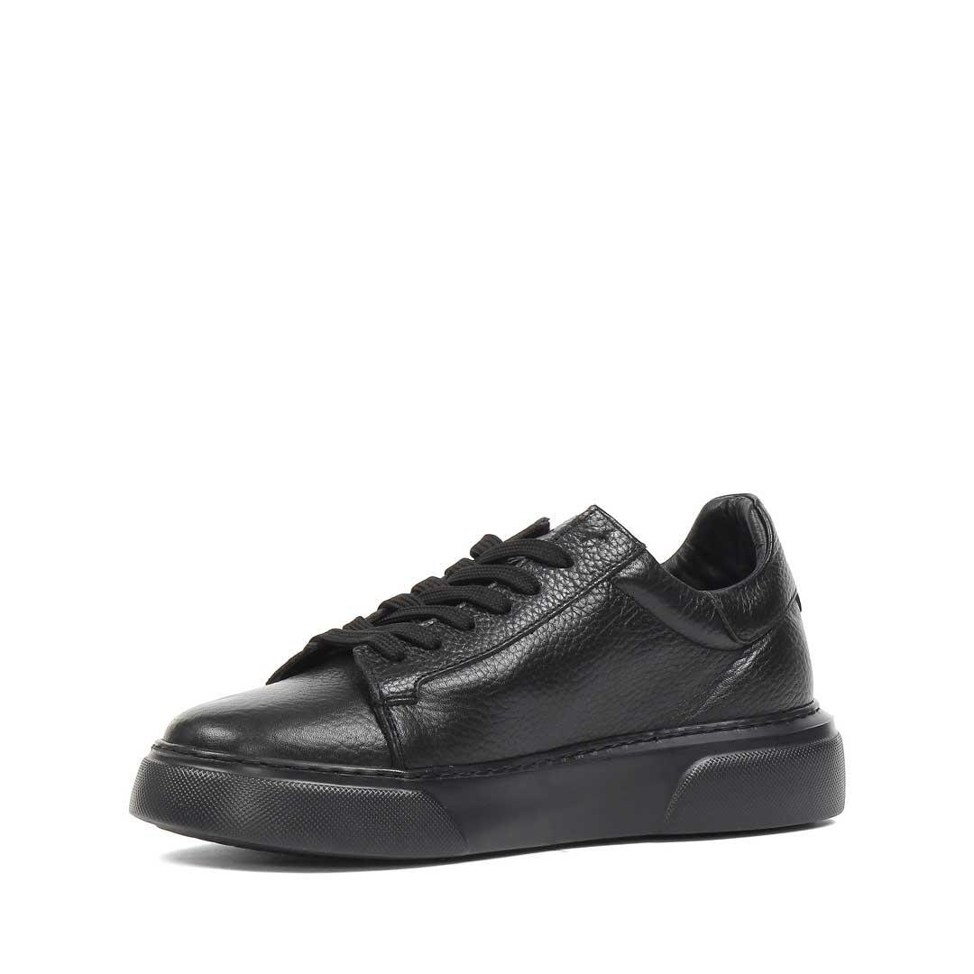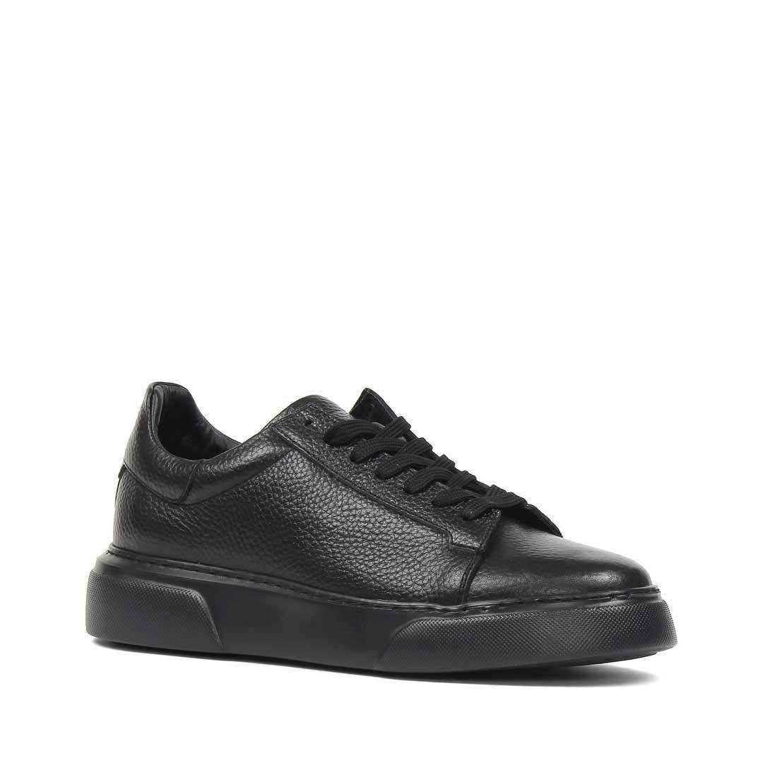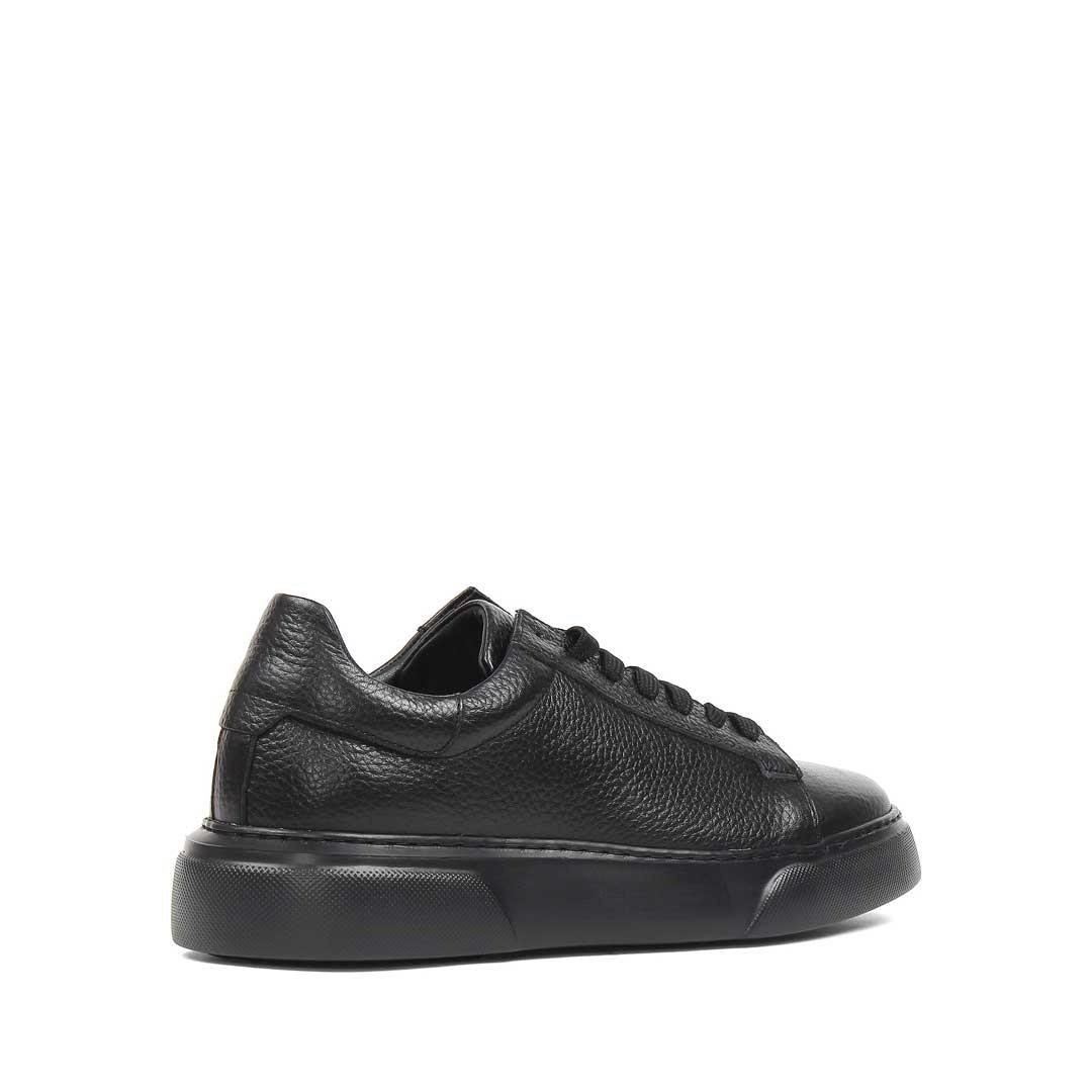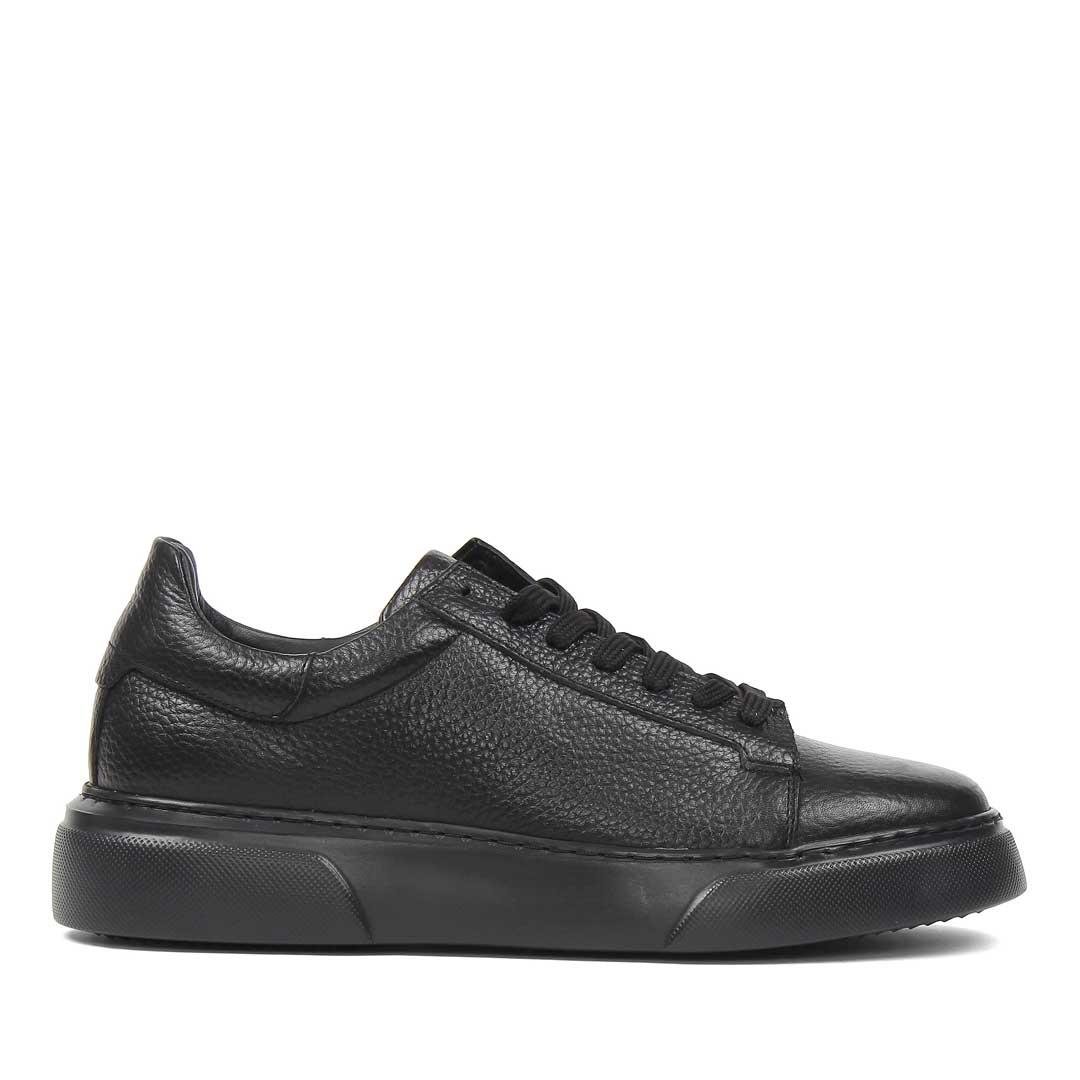 Erkek Düz Siyah Bağcıklı Kalın Tabanlı Deri Sneaker (430 2712-19317)