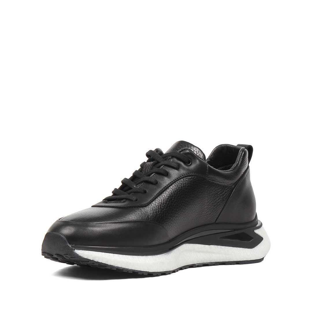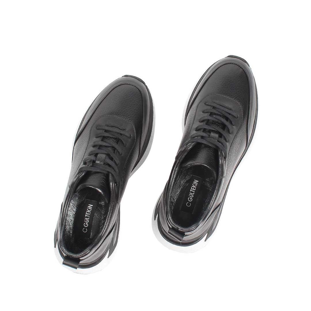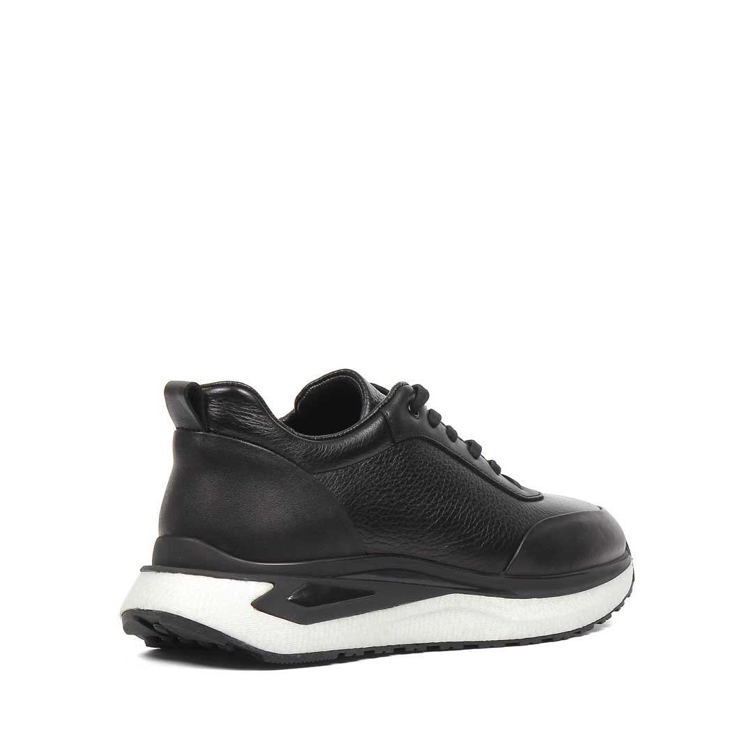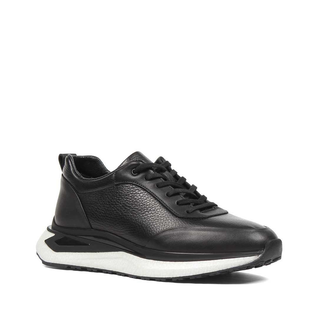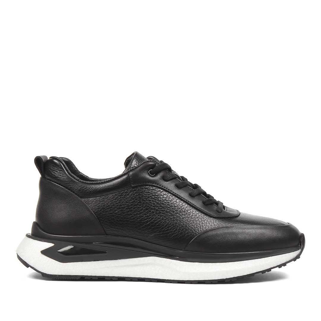 Erkek Siyah Bağcıklı Kalın Tabanlı Deri Sneaker (663 464-1)