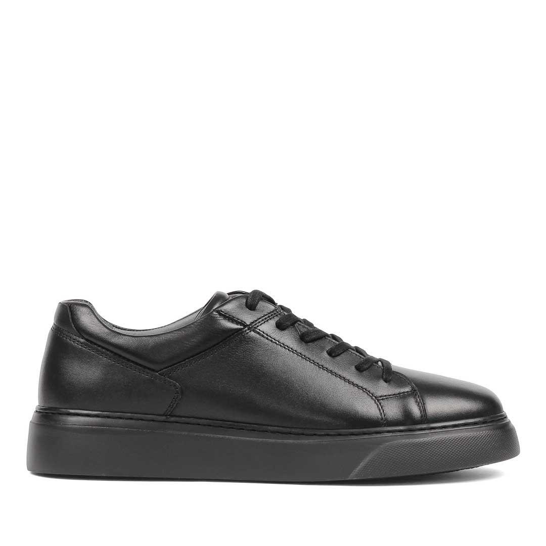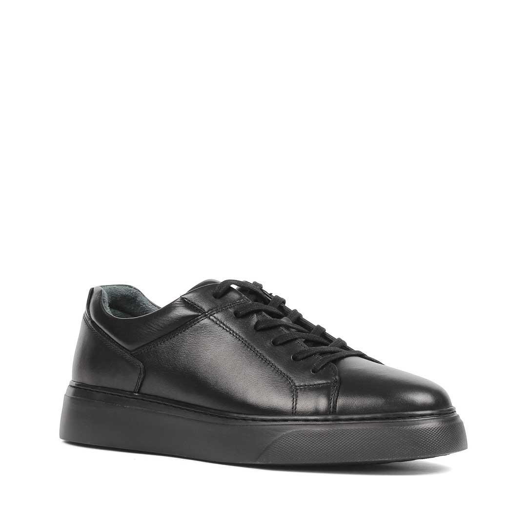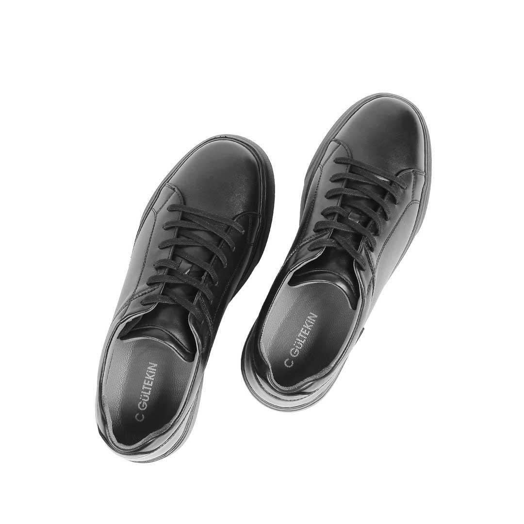 Erkek Siyah Bağcıklı Kalın Tabanlı Deri Sneaker (679 5800-1)
