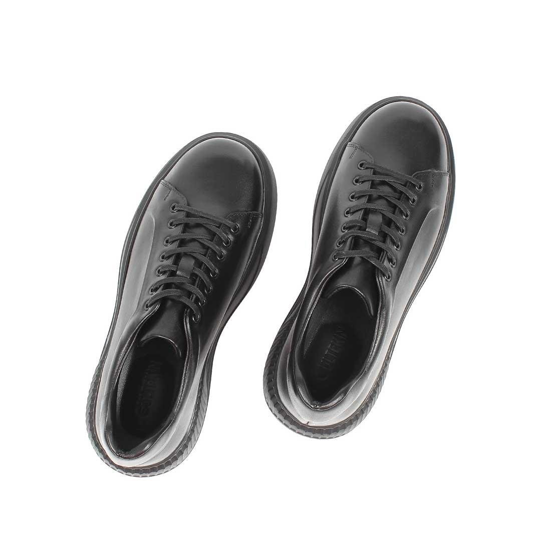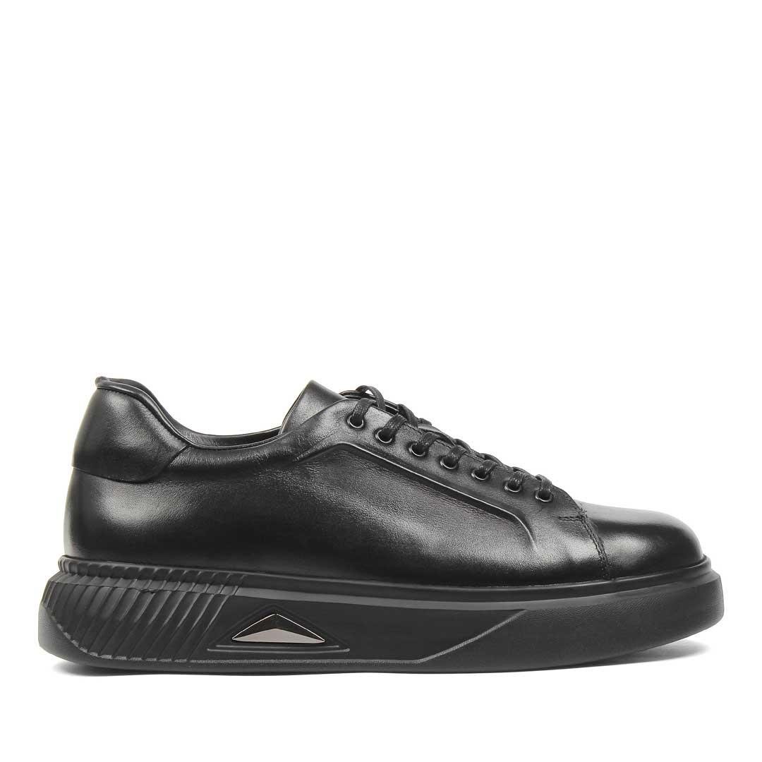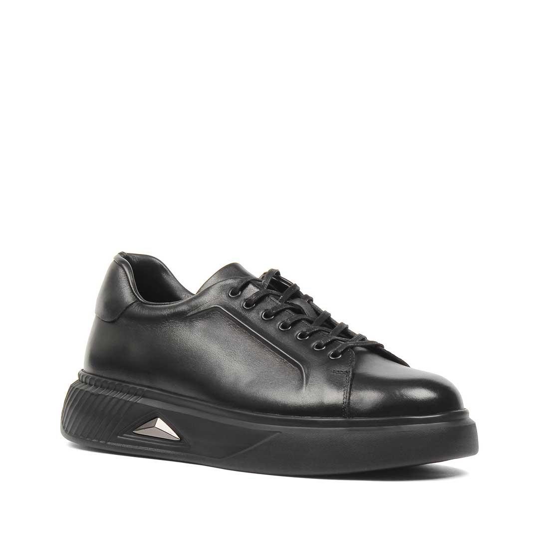 Erkek Siyah Bağcıklı Kalın Tabanlı Deri Sneaker (691 3451-1)