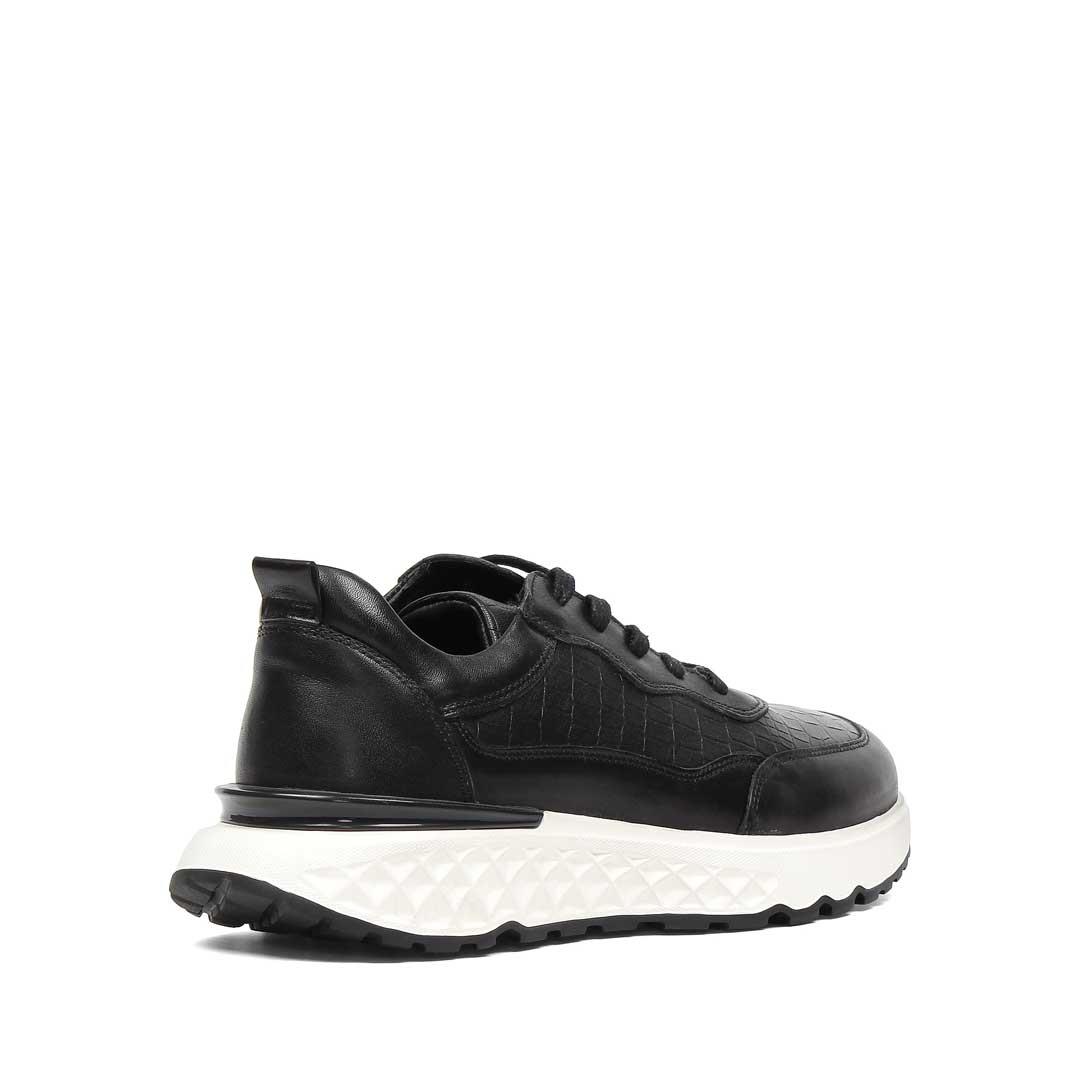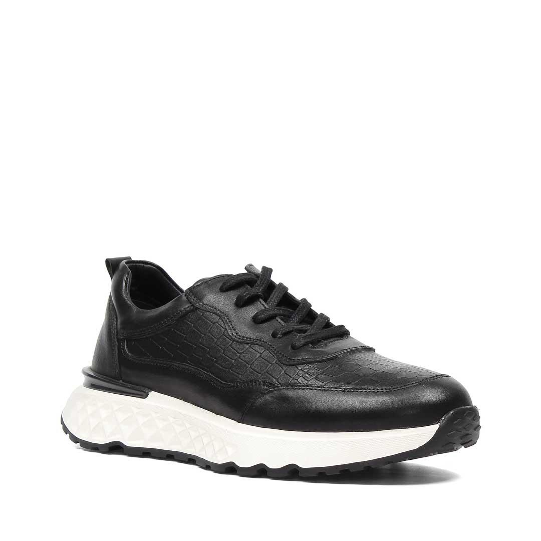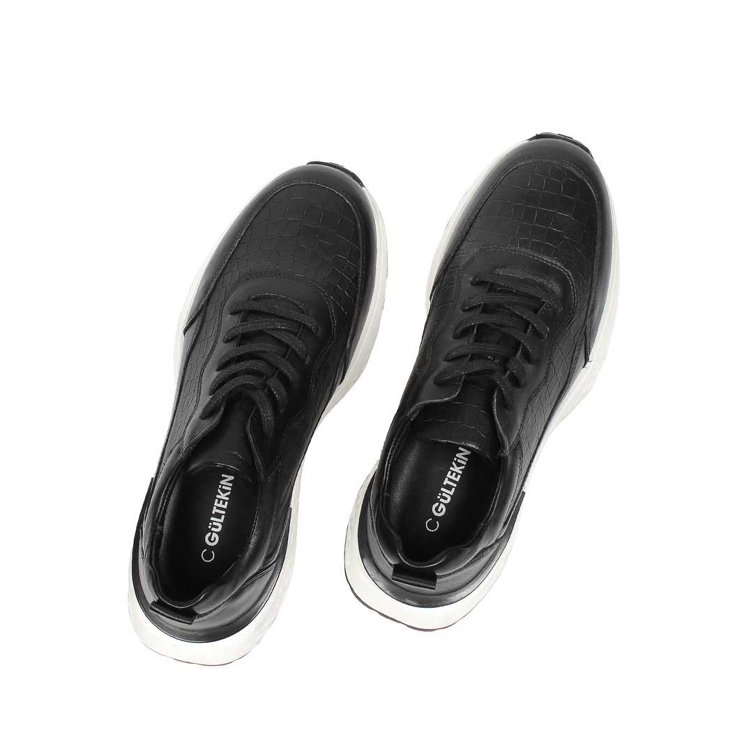 Erkek Siyah Bağcıklı Kalın Tabanlı Kroko Deri Sneaker (550 4788-18047)