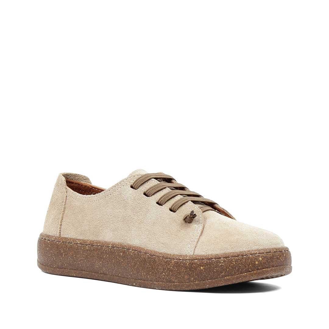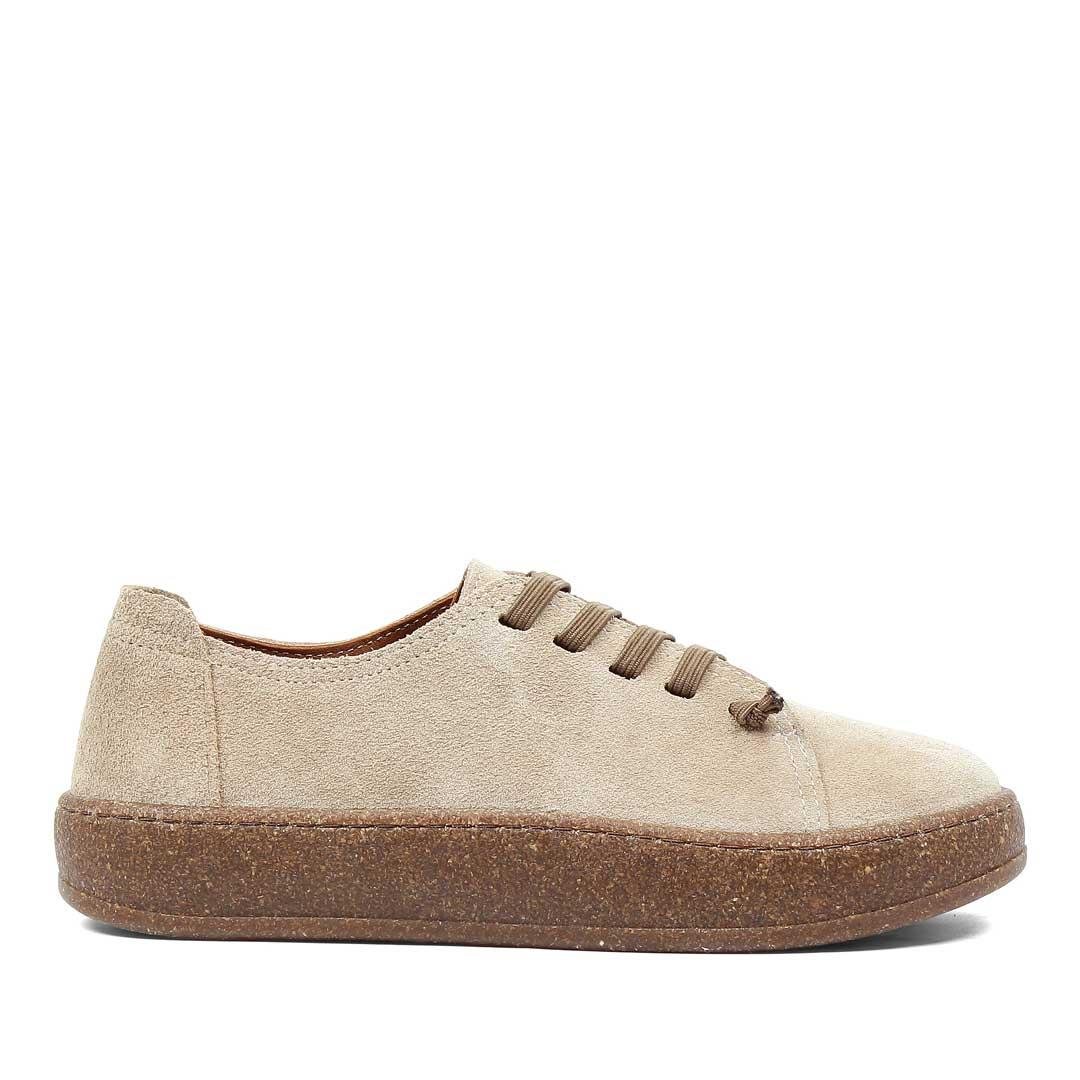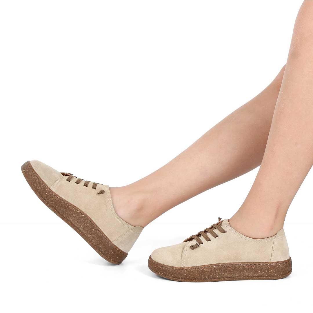 Kadın Bej Bağcıklı Kalın Tabanlı Süet Deri Ayakkabı (759 33512-17192)