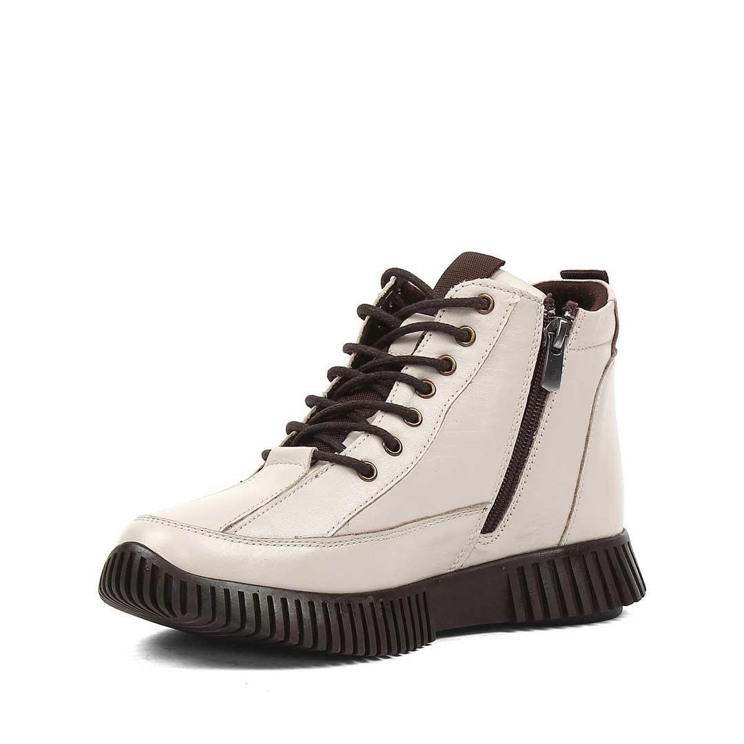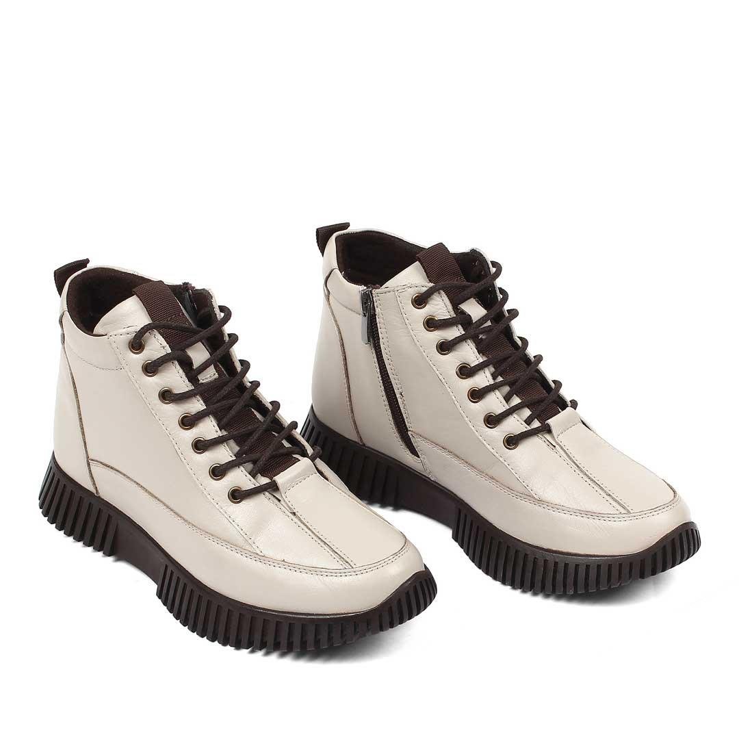 Kadın Bej Çift Fermuarlı Deri Bot (689 22230-16521)