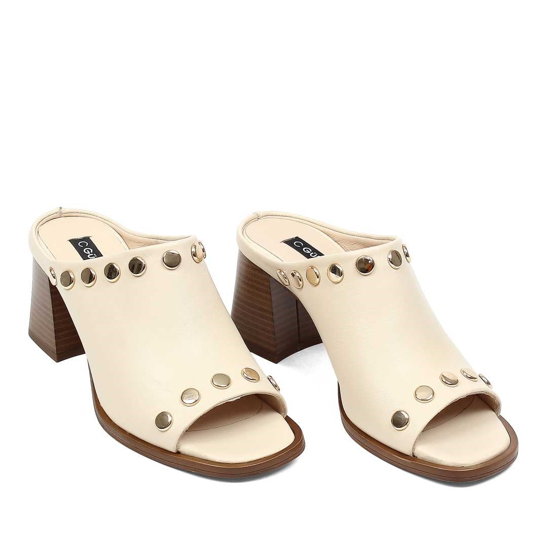Kadın Bej Kalın Topuklu Deri Terlik (801 42703-16521)