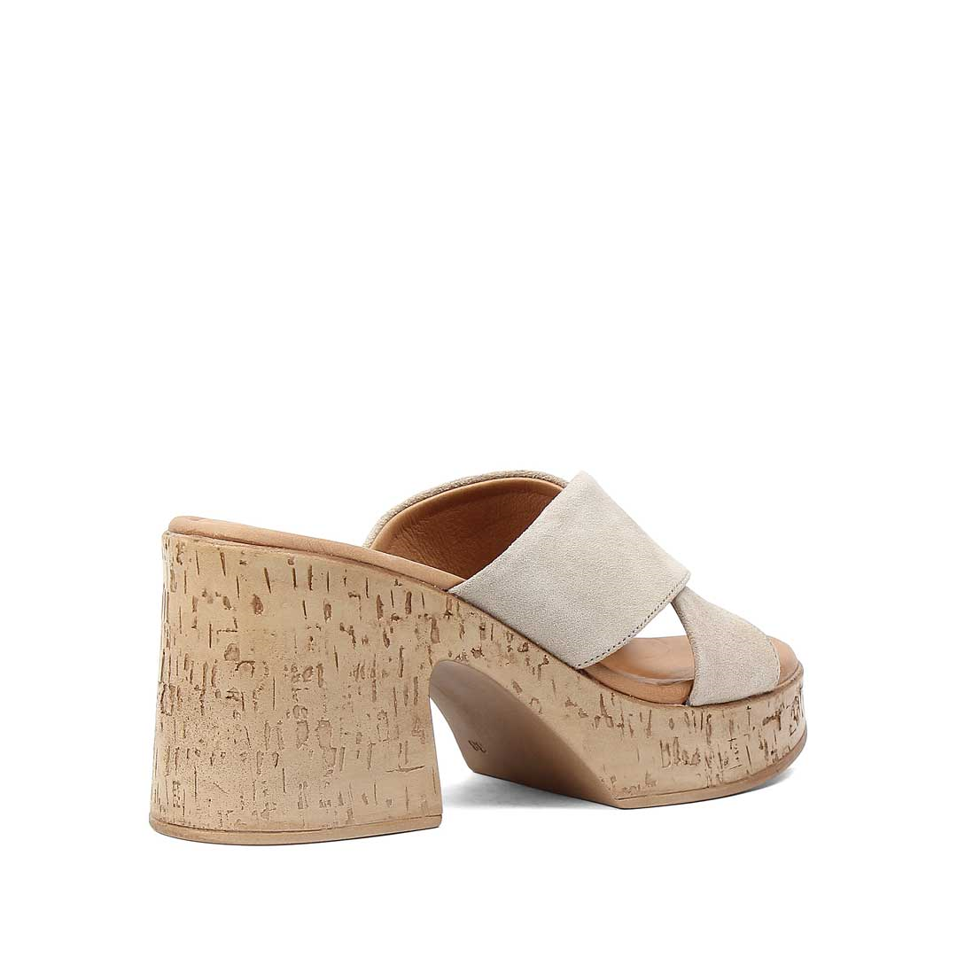 Kadın Bej Kalın Topuklu Süet Deri Terlik (541 23085-17192)