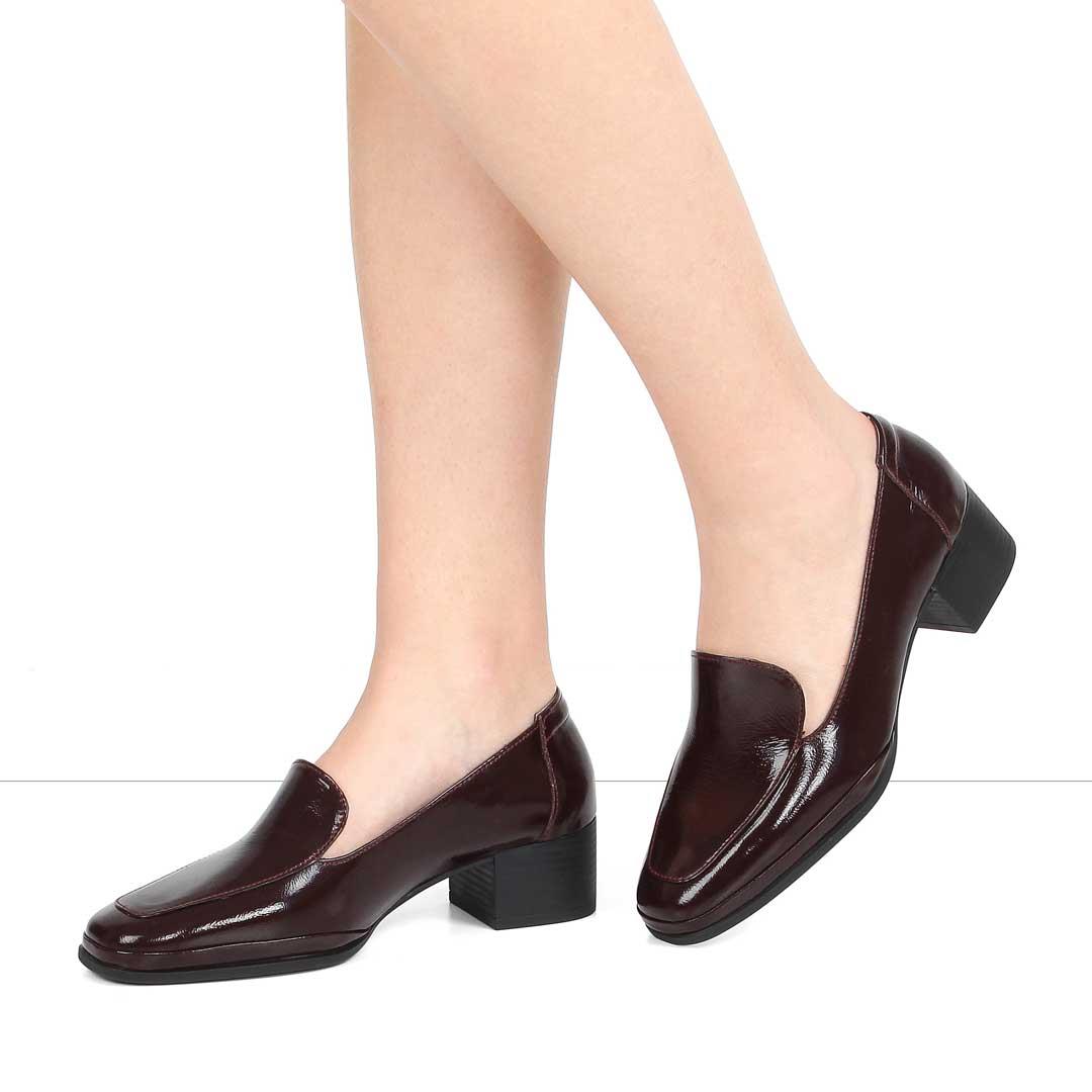 Kadın Bordo Kısa Kalın Topuklu Rugan Deri Klasik Ayakkabı (563 20398-16956)