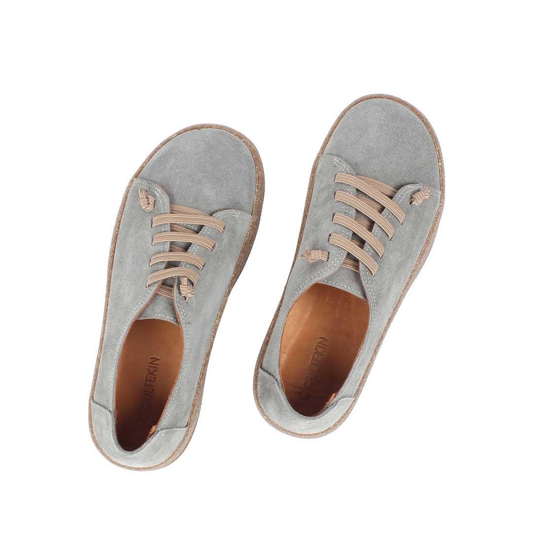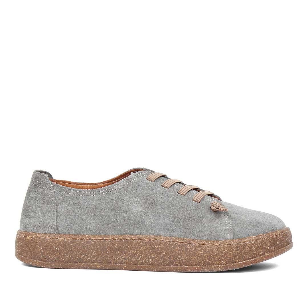 Kadın Gri Bağcıklı Kalın Tabanlı Süet Deri Ayakkabı (759 33512-16986)