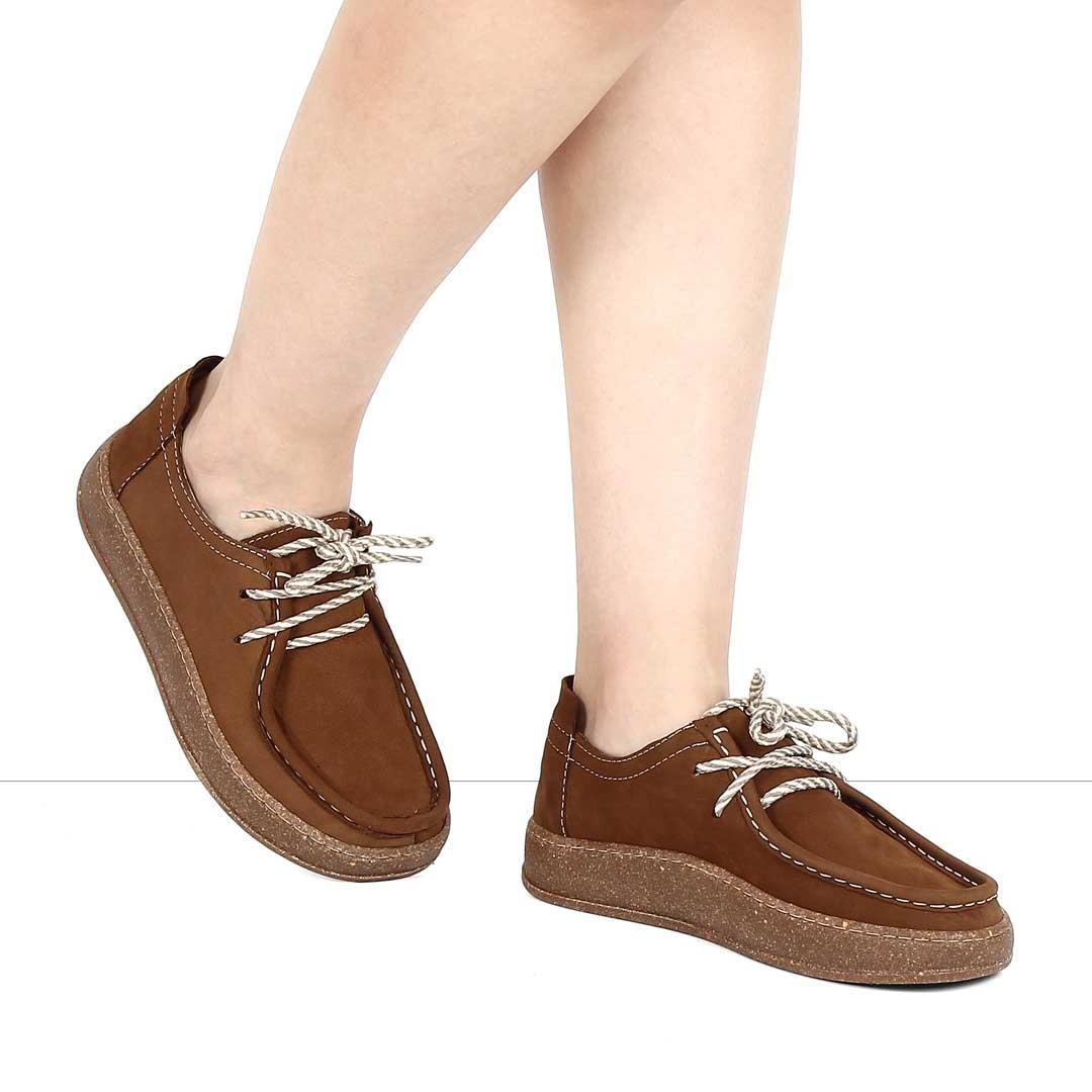 Kadın Kahverengi Bağcıklı Kalın Tabanlı Nubuk Deri Ayakkabı (756 33202-16515)