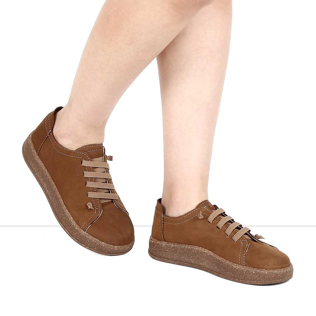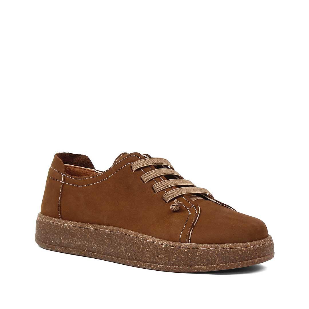 Kadın Kahverengi Bağcıklı Kalın Tabanlı Nubuk Deri Ayakkabı (756 33203-16515)