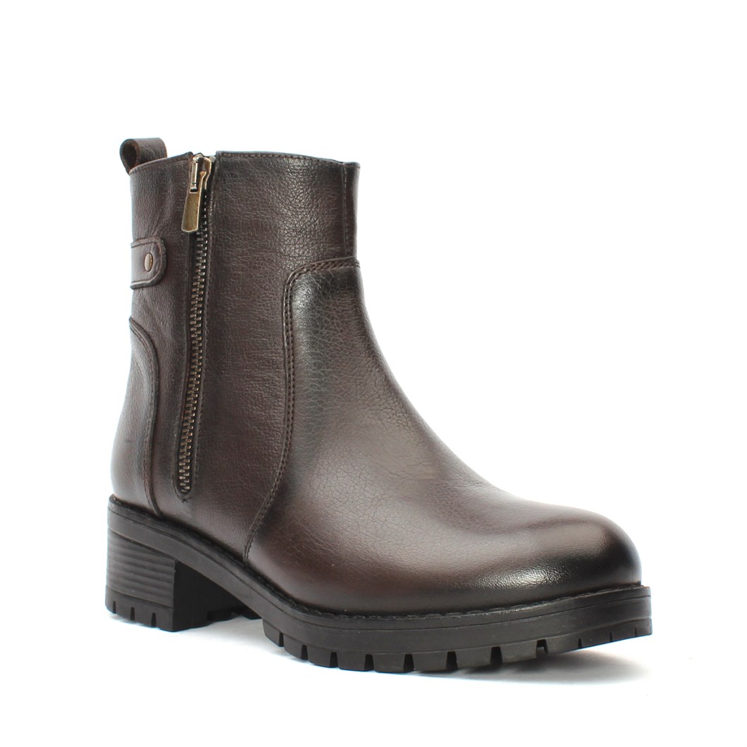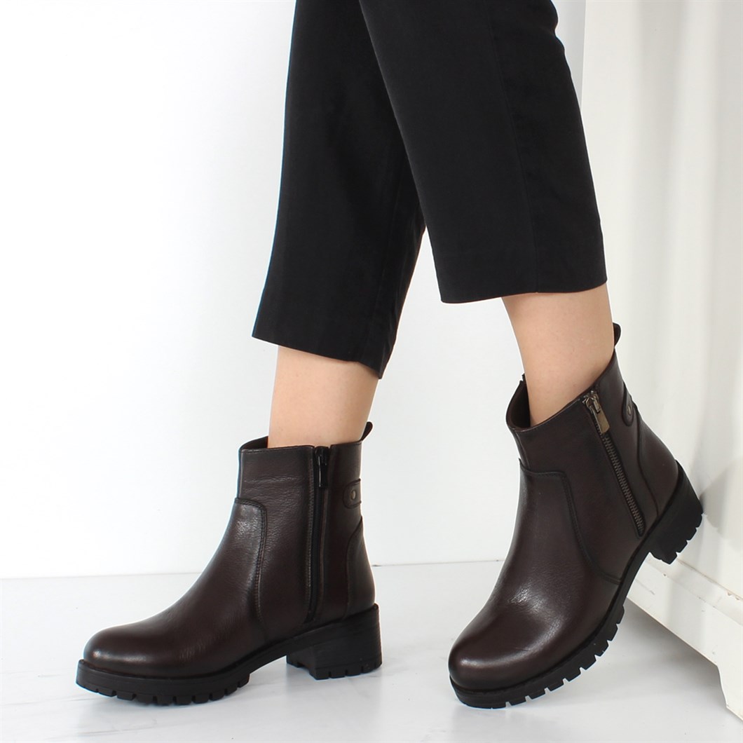 Kadın Kahverengi Çift Fermuarlı Kalın Tabanlı Deri Bot (625 23913-16512)