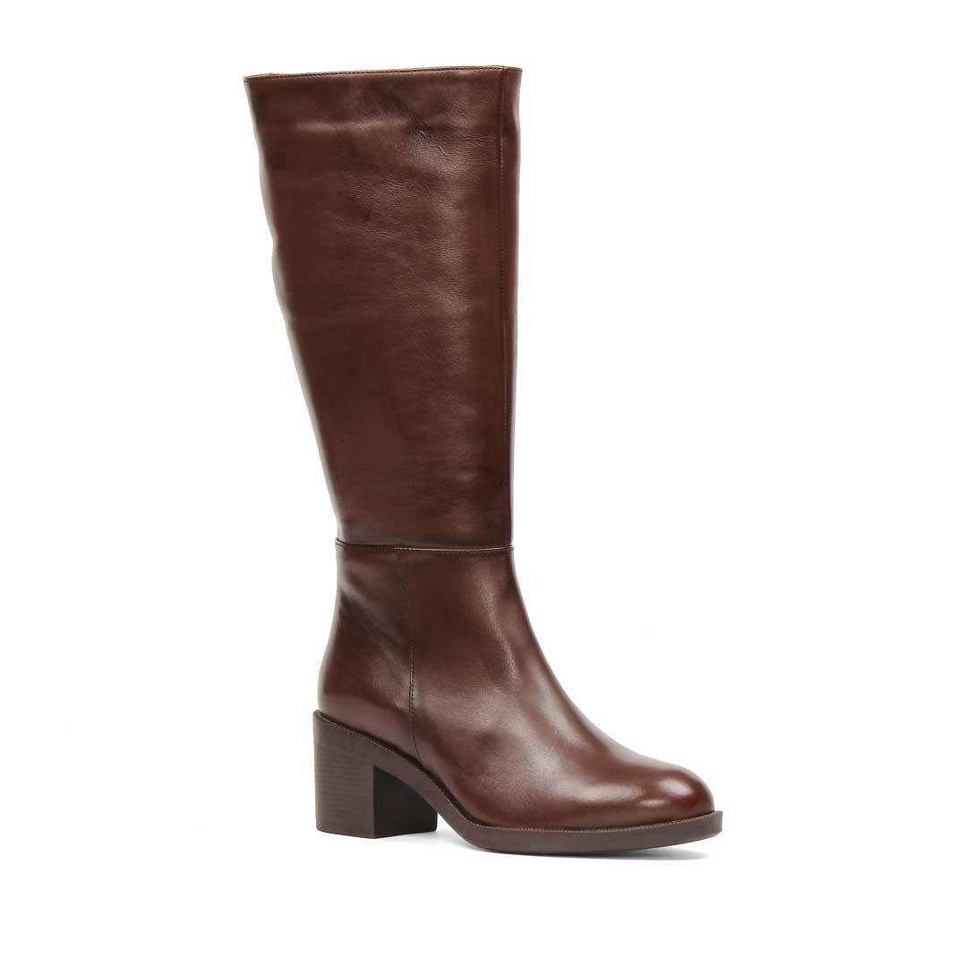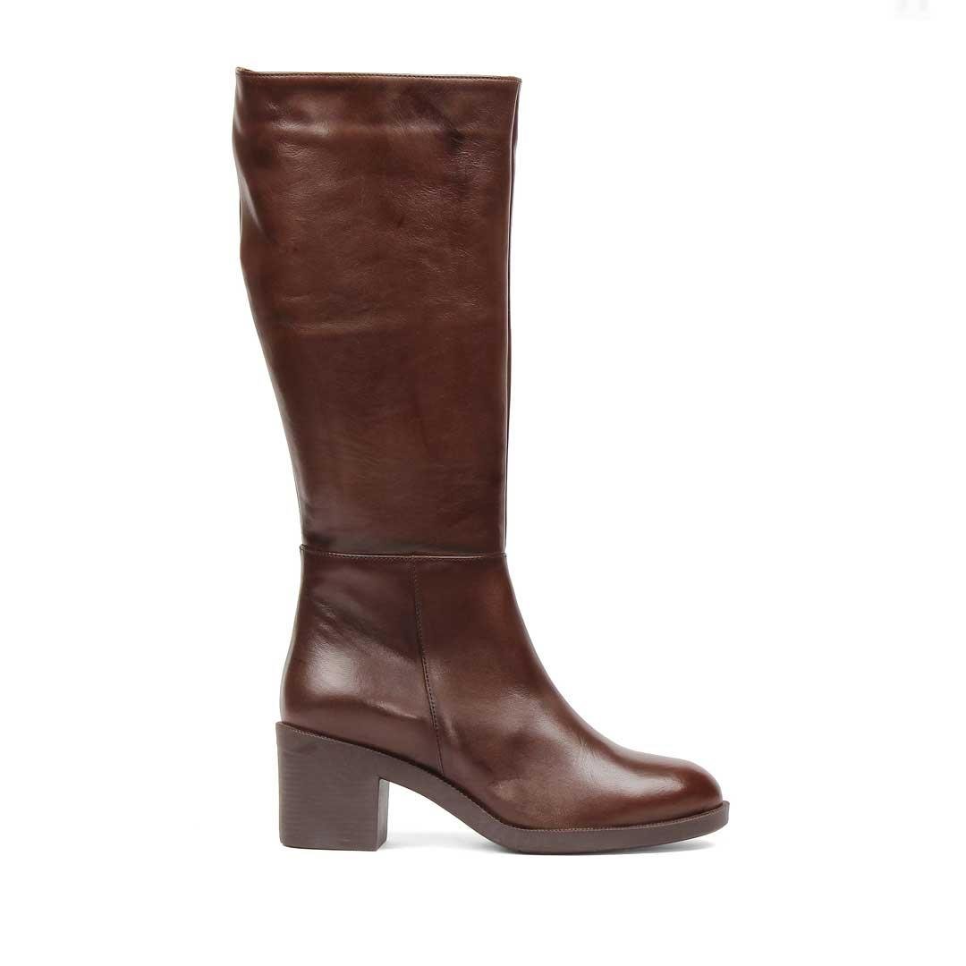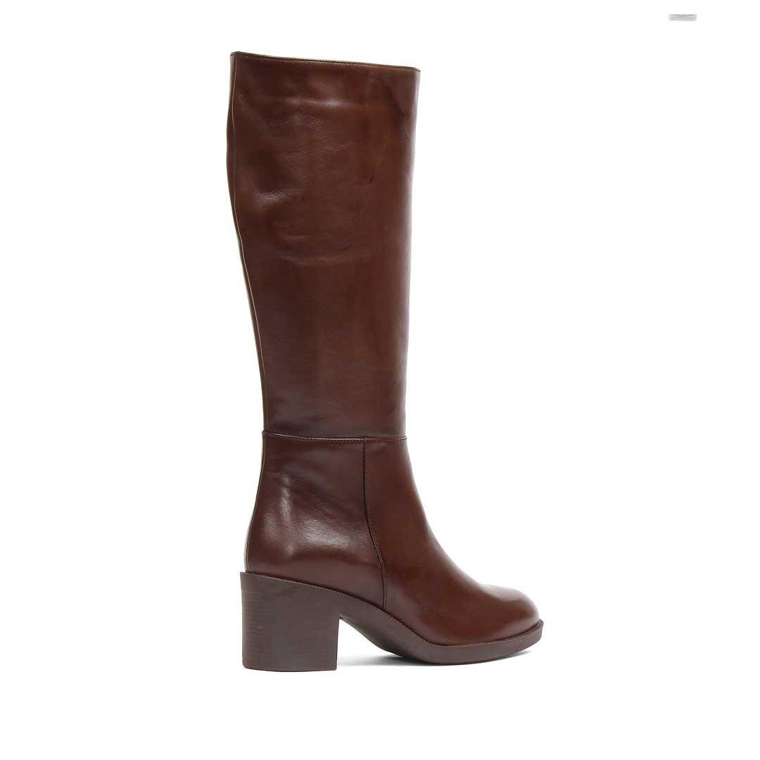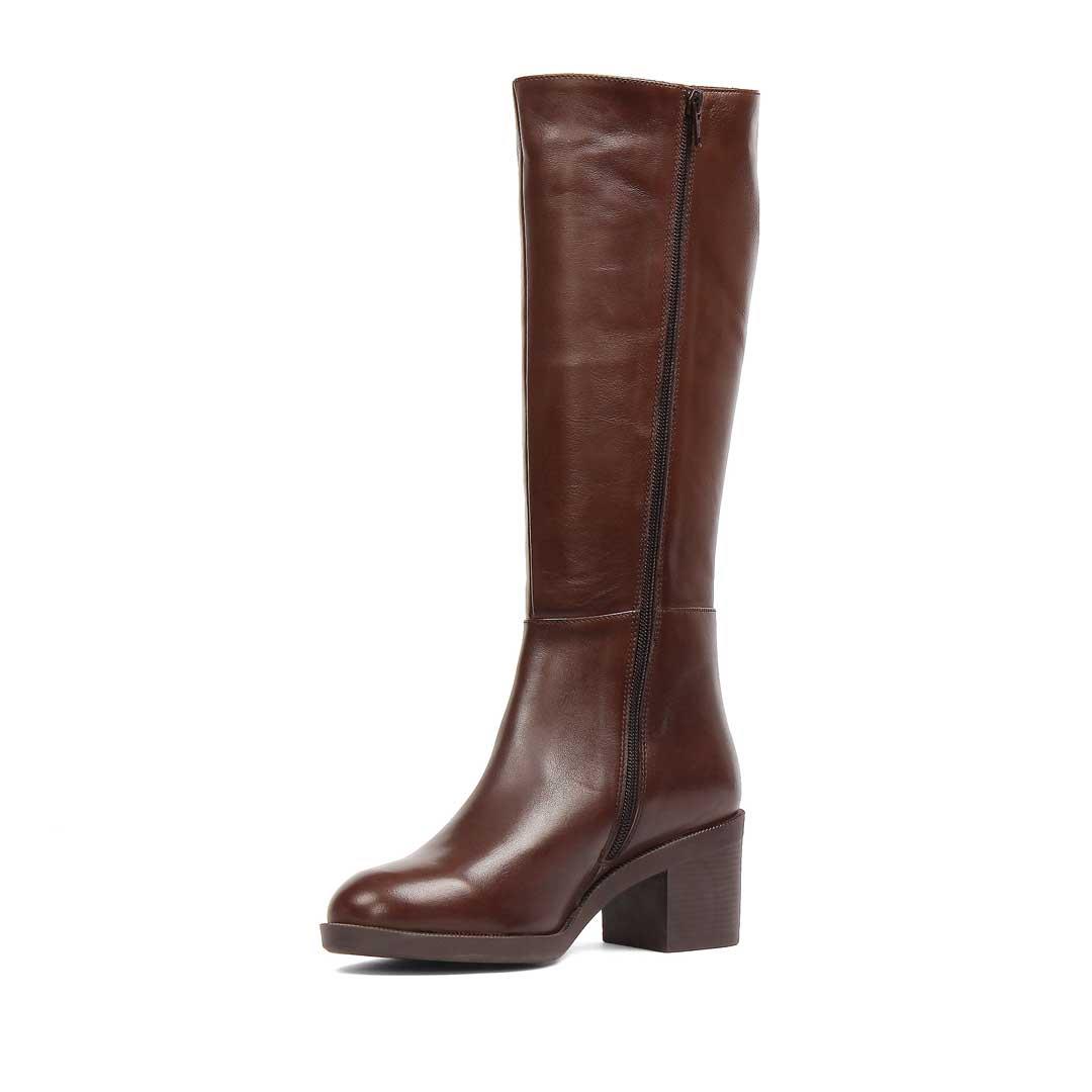 Kadın Kahverengi Fermuarlı Topuklu Deri Çizme (669 22646-16512)