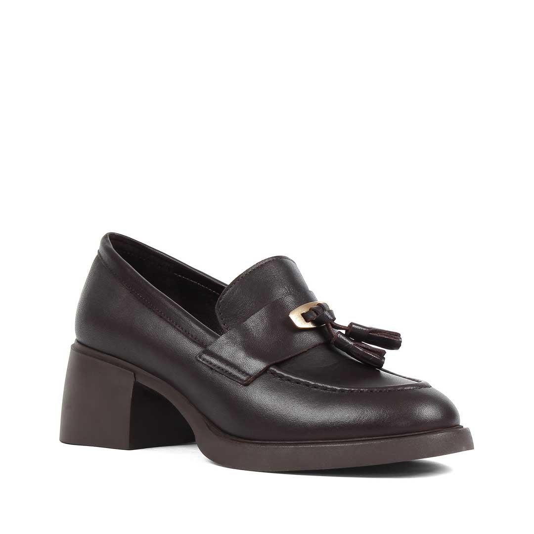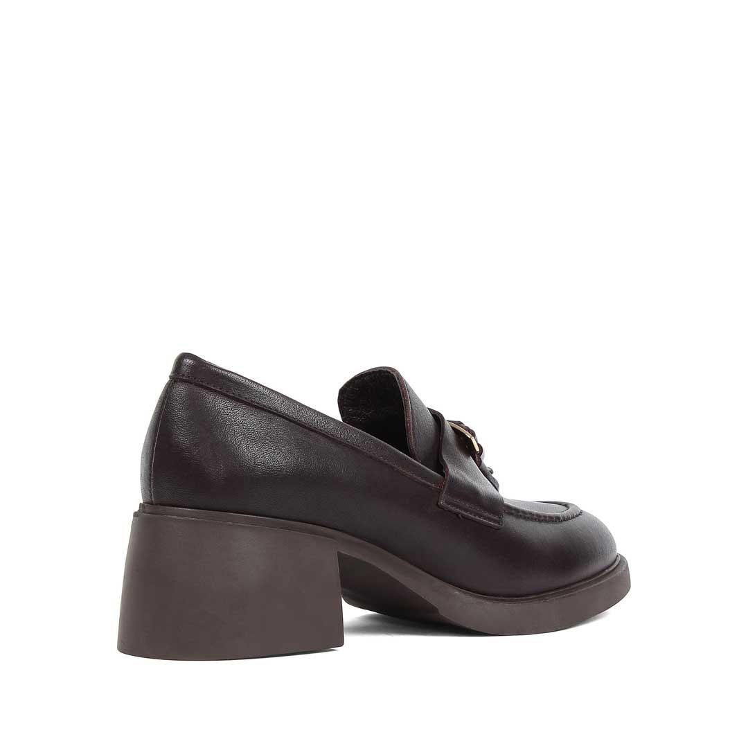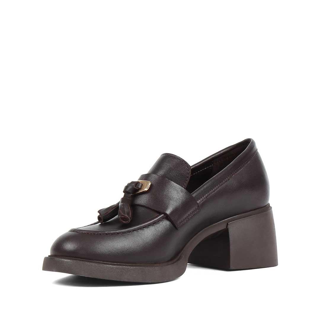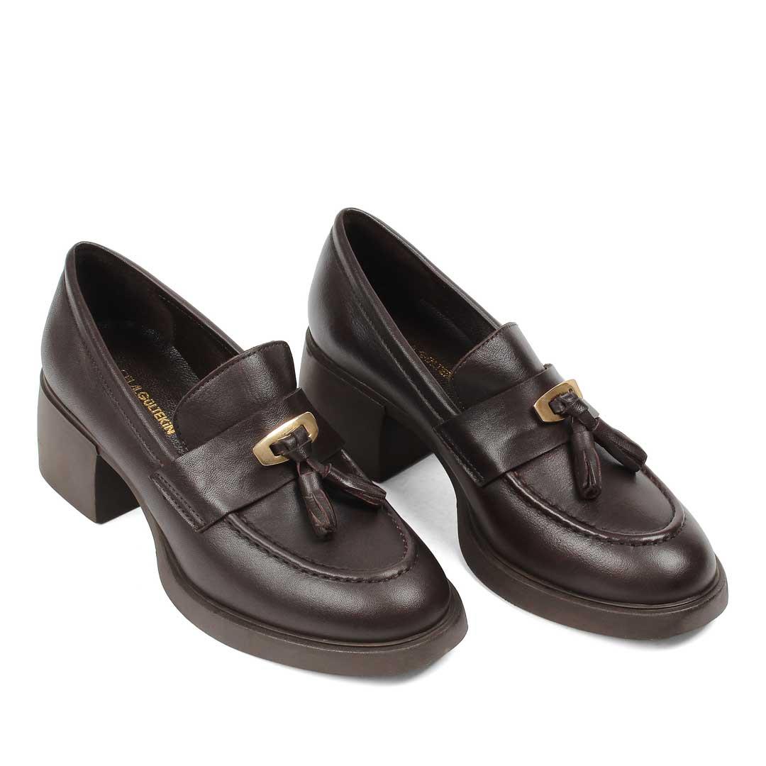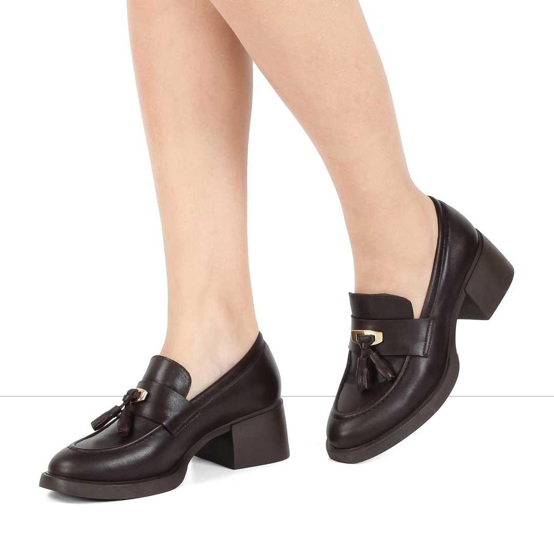 Kadın Kahverengi Kalın Topuklu Deri Klasik Ayakkabı (085 29417-16512)