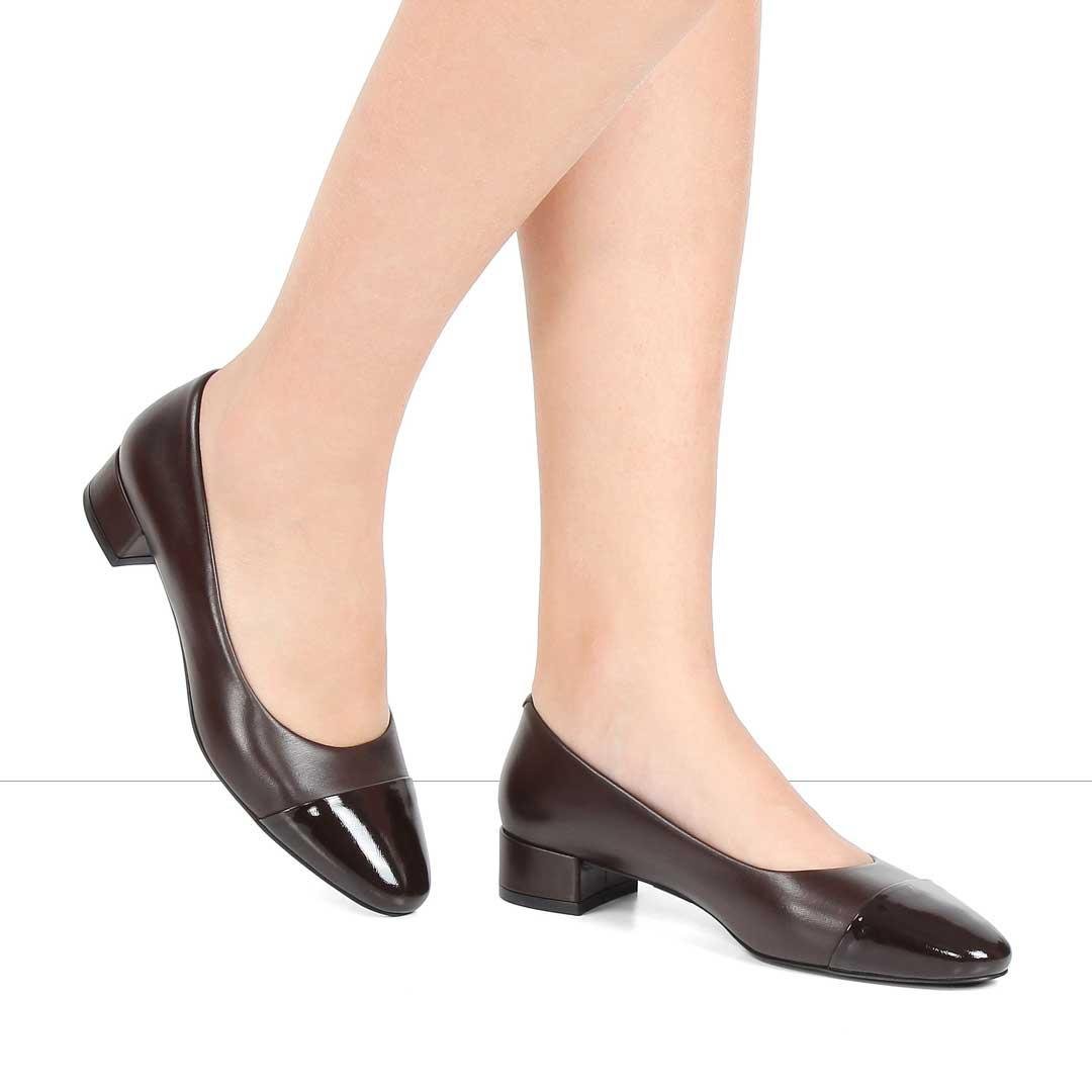 Kadın Kahverengi Kısa Kalın Topuklu Rugan Deri Klasik Ayakkabı (085 29409-20483)