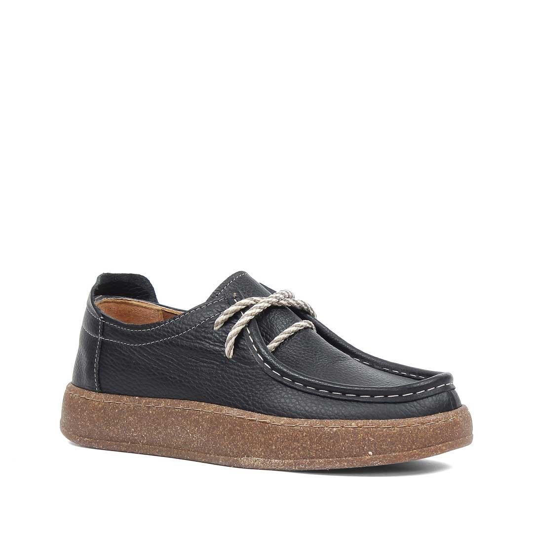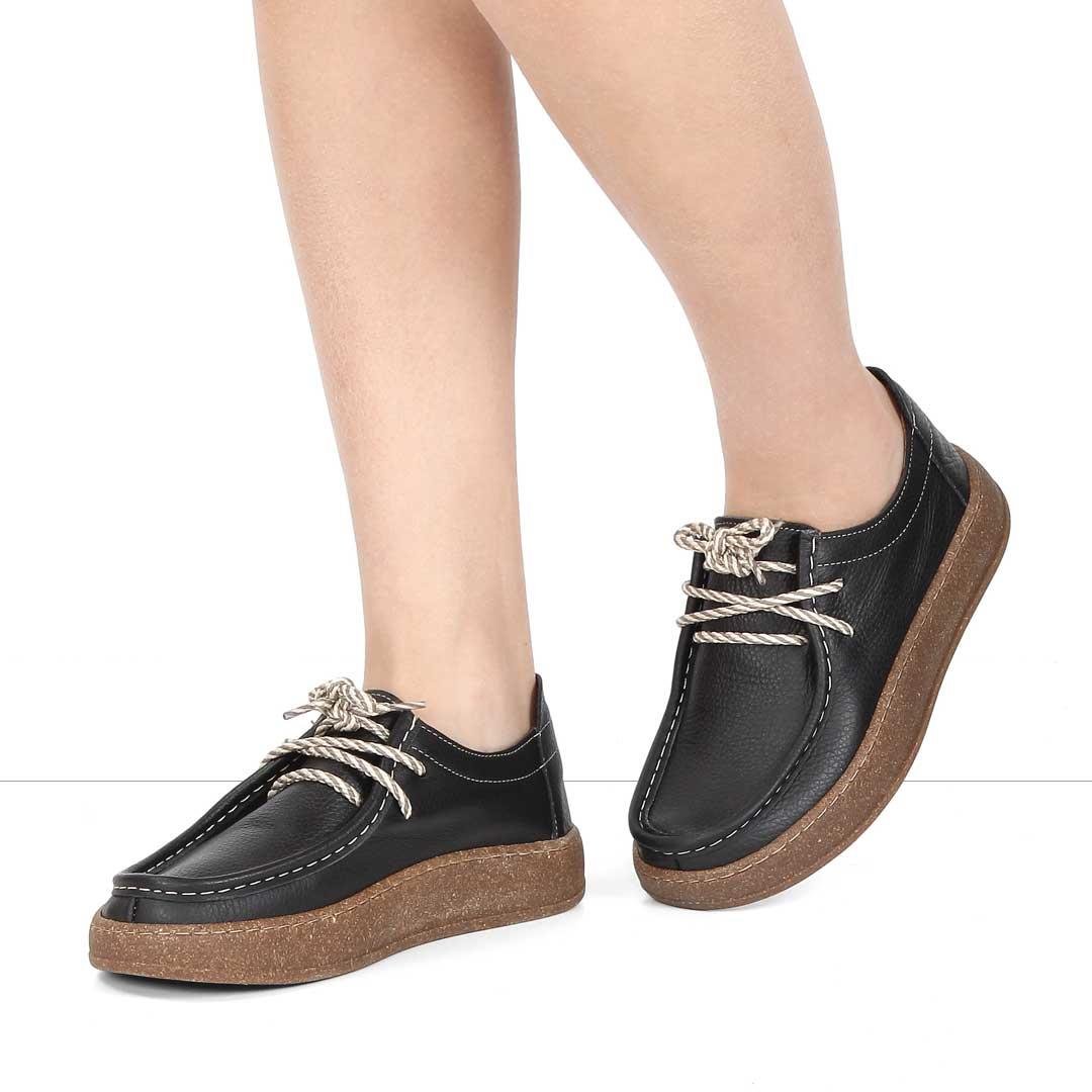 Kadın Siyah Bağcıklı Kalın Tabanlı Deri Ayakkabı (756 33202-1)