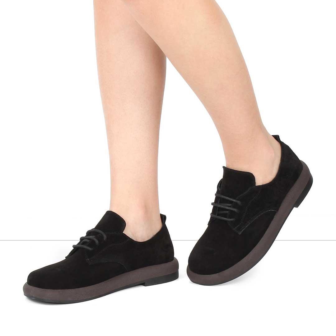 Kadın Siyah Bağcıklı Kalın Tabanlı Süet Deri Ayakkabı (425 31608-16641)