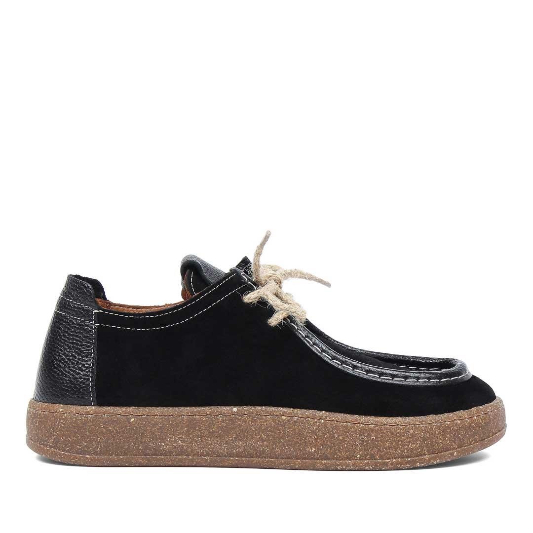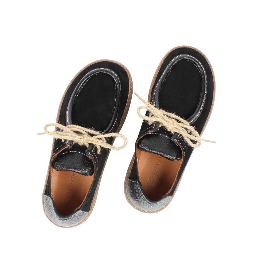 Kadın Siyah Bağcıklı Kalın Tabanlı Süet Deri Ayakkabı (759 33508-16641)