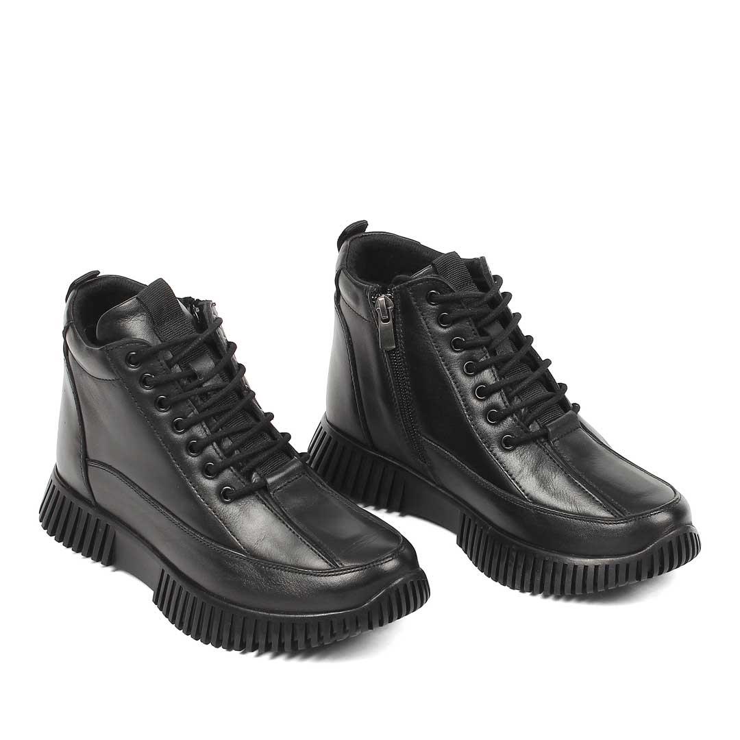 Kadın Siyah Çift Fermuarlı Deri Bot (689 22230-1)