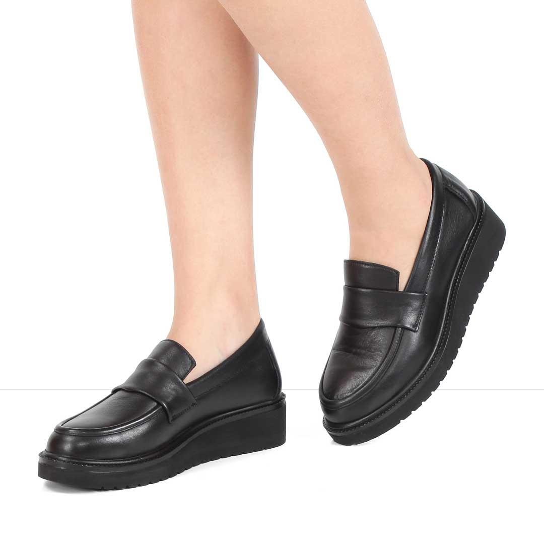 Kadın Siyah Dolgu Topuklu Deri Ayakkabı (727 28635-1)