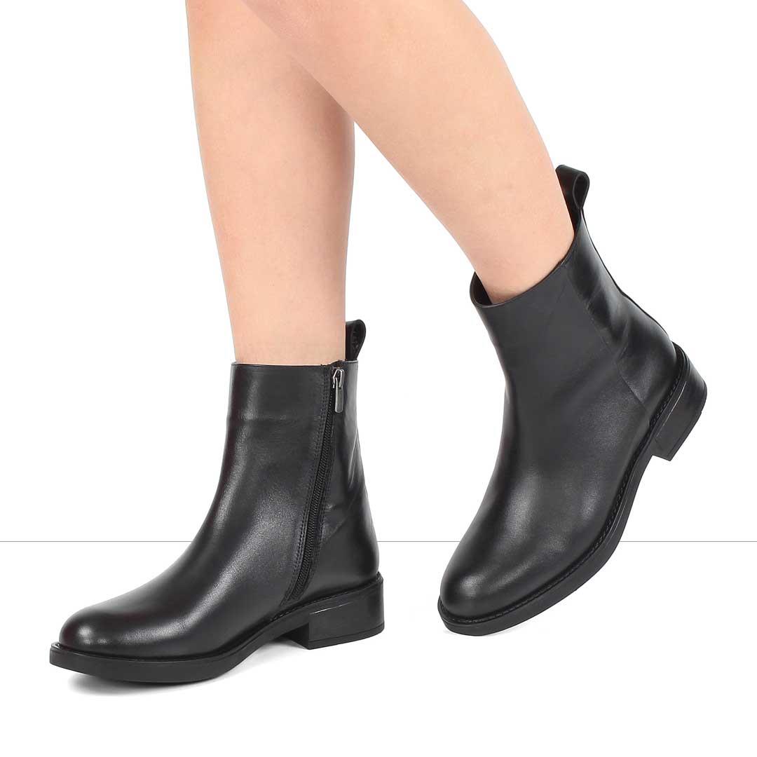 Kadın Siyah Fermuarlı Deri Bot (085 29419-1)