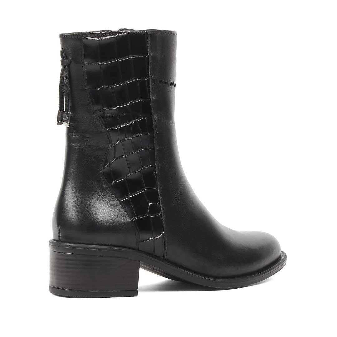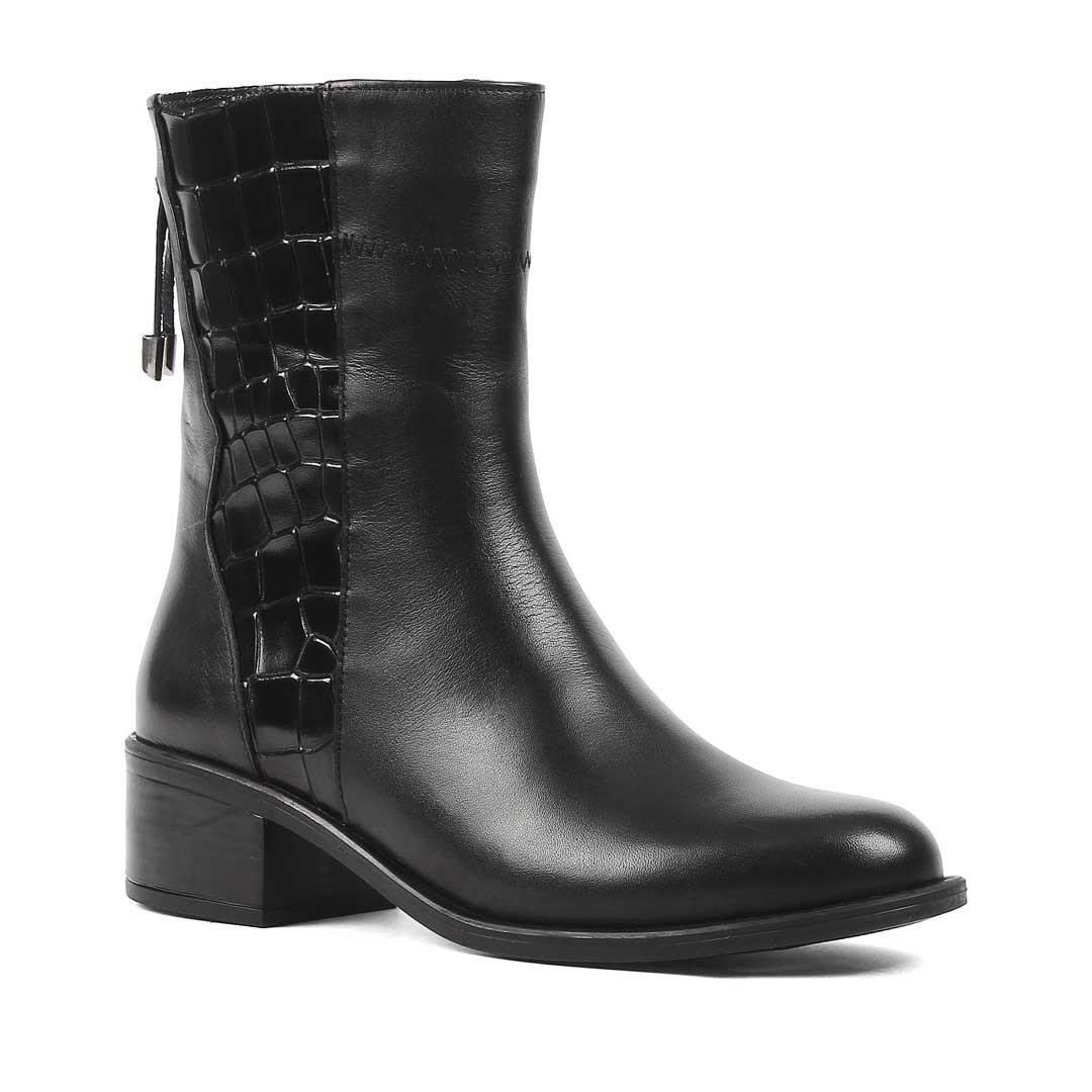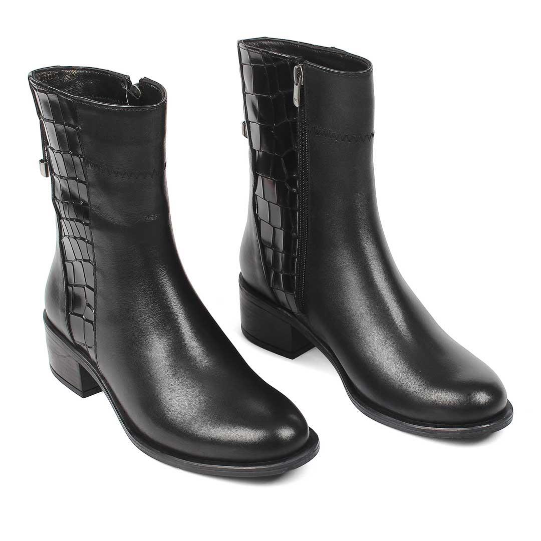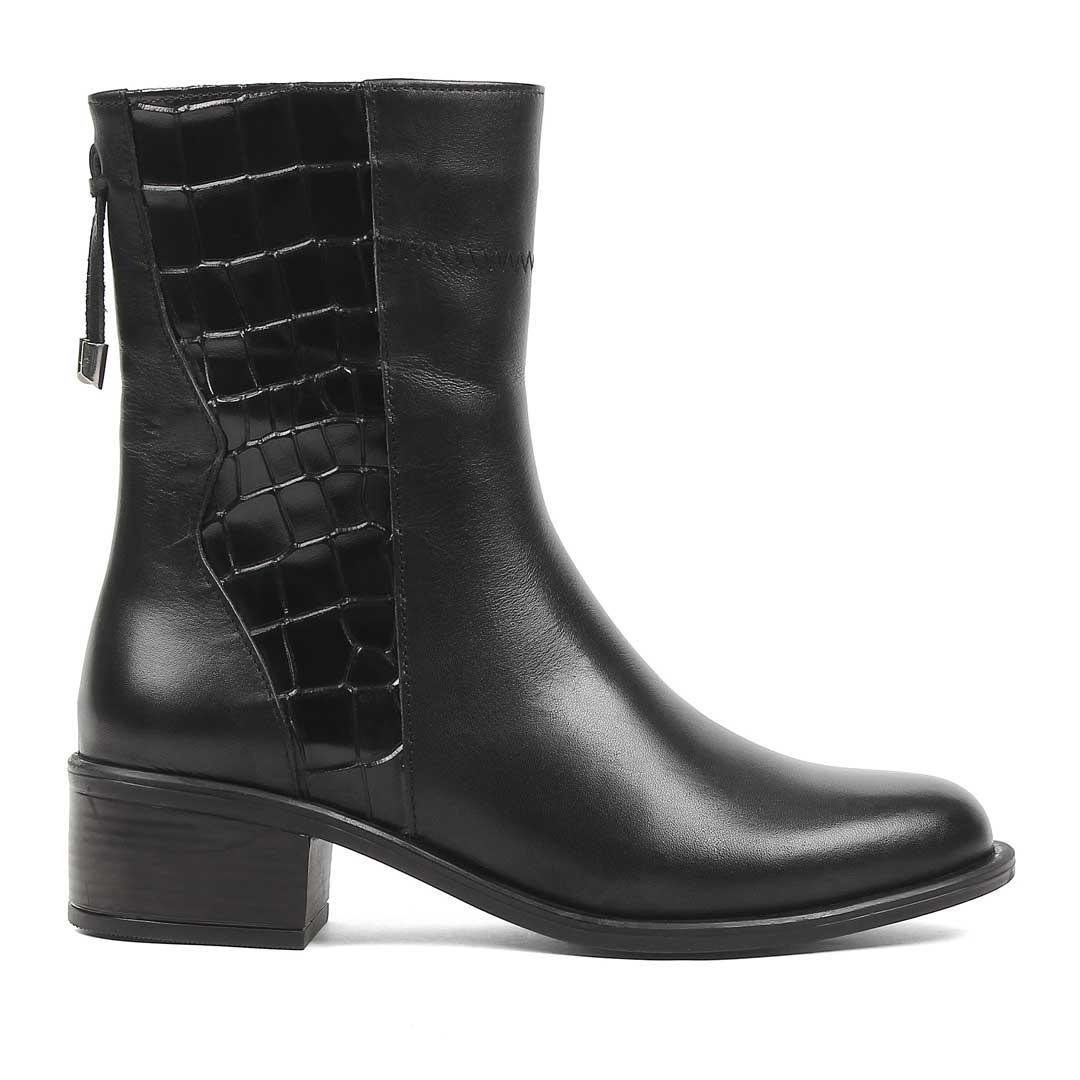 Kadın Siyah Fermuarlı Kroko Deri Bot (601 31313-20095)