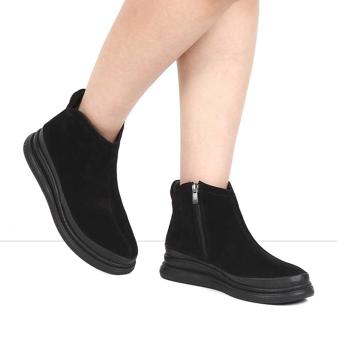 Kadın Siyah Fermuarlı Süet Deri Bot (601 31309-16641)