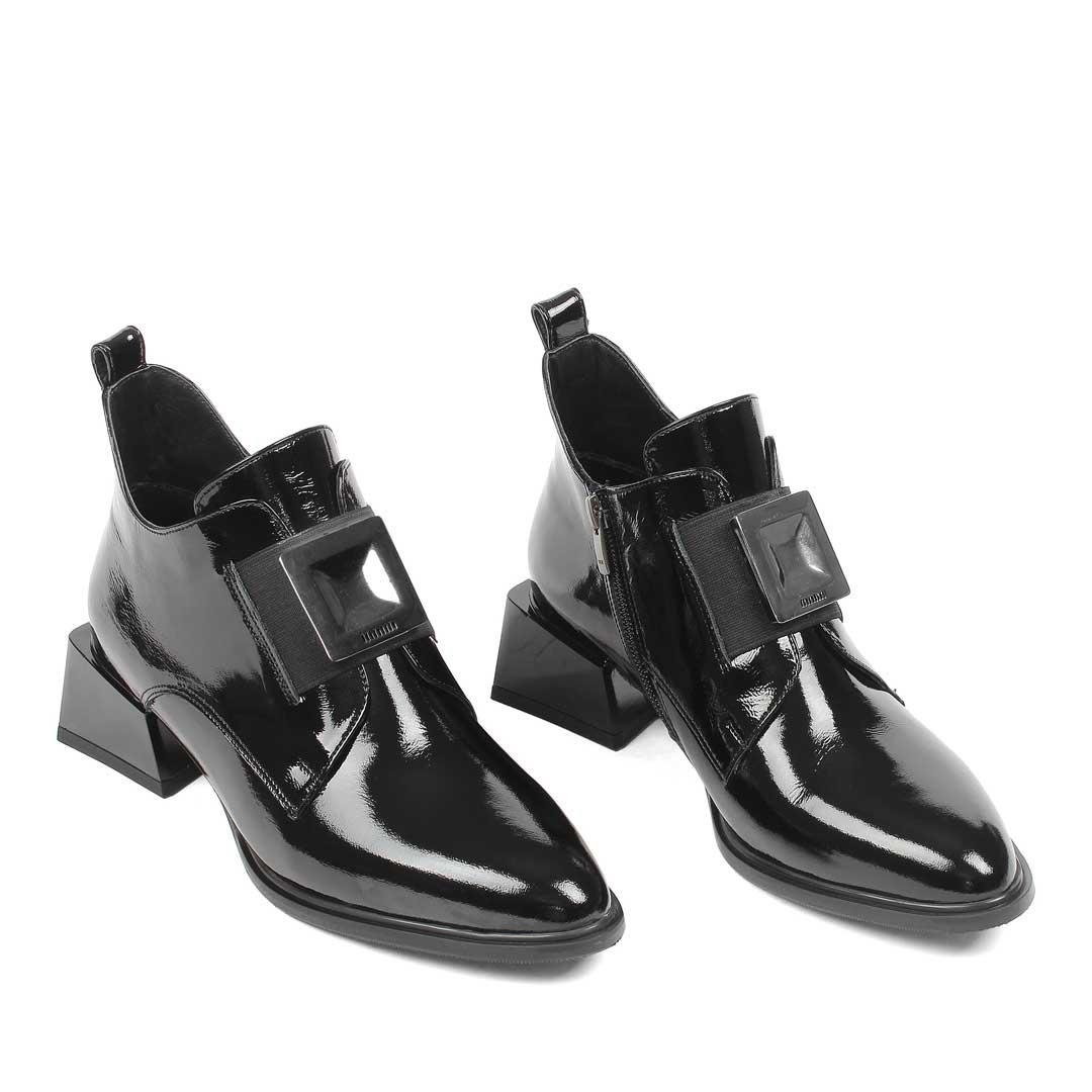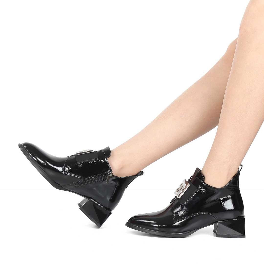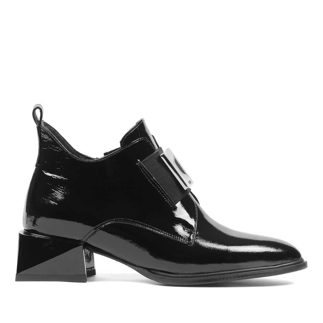 Kadın Siyah Fermuarlı Toka Detaylı Rugan Deri Bot (787 41800-16541)