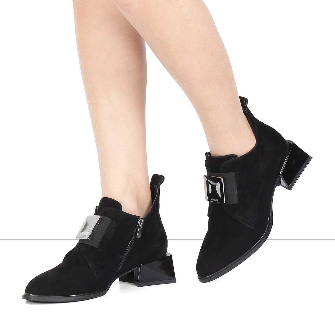 Kadın Siyah Fermuarlı Toka Detaylı Süet Deri Bot (787 41800-16641)