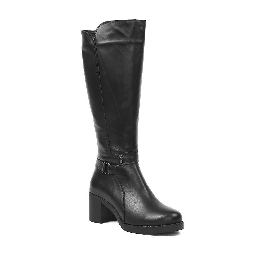 Kadın Siyah Fermuarlı Topuklu Deri Çizme (789 42100-1)