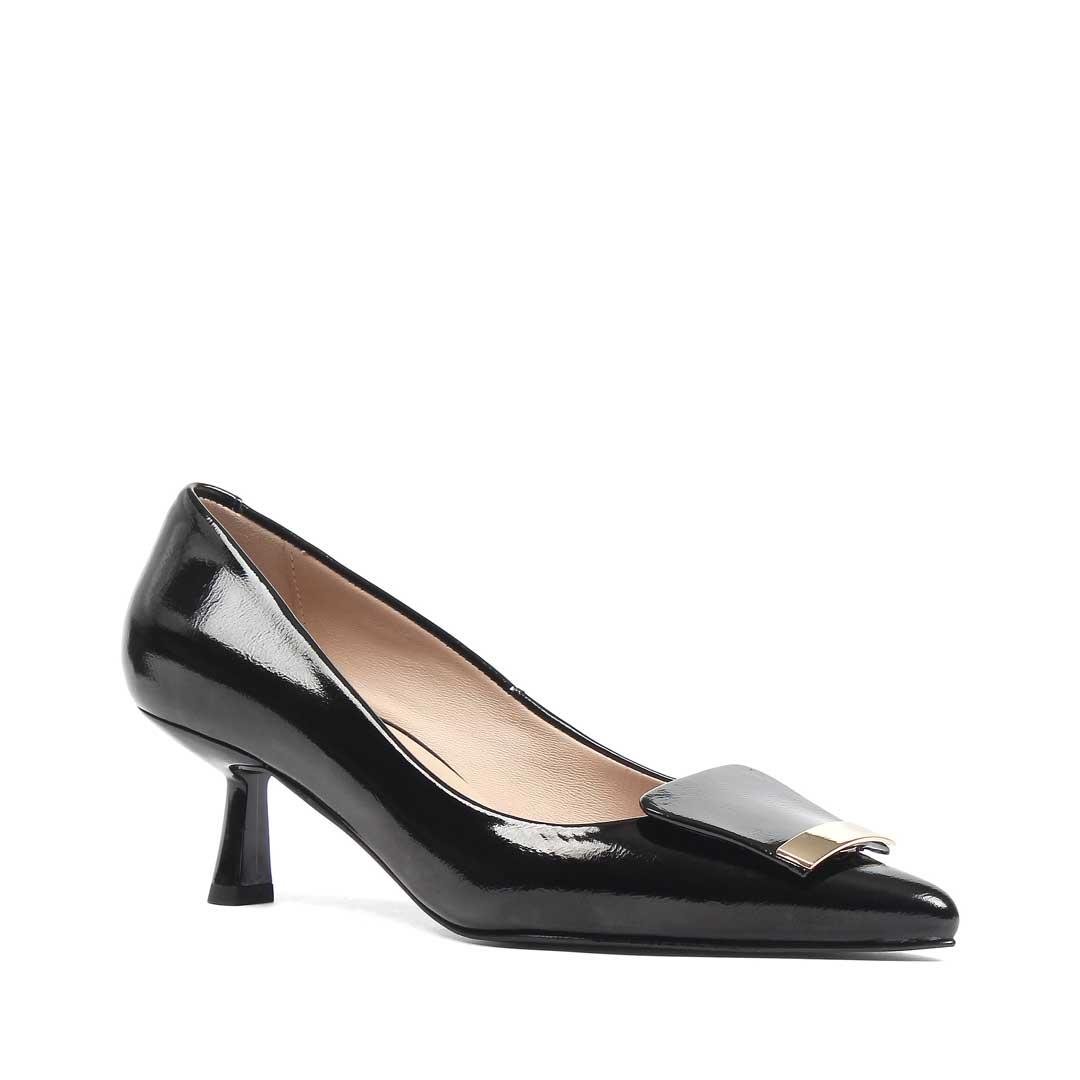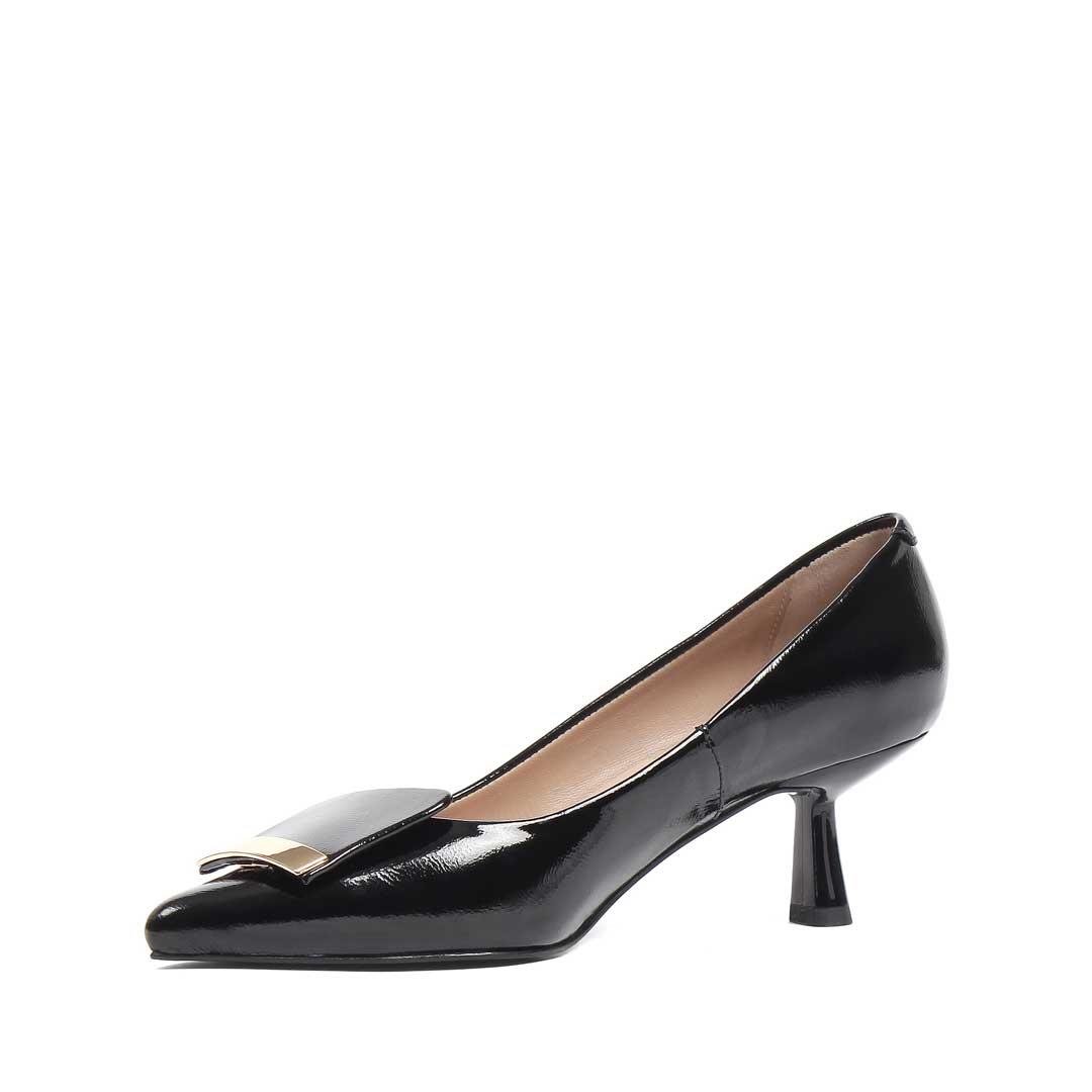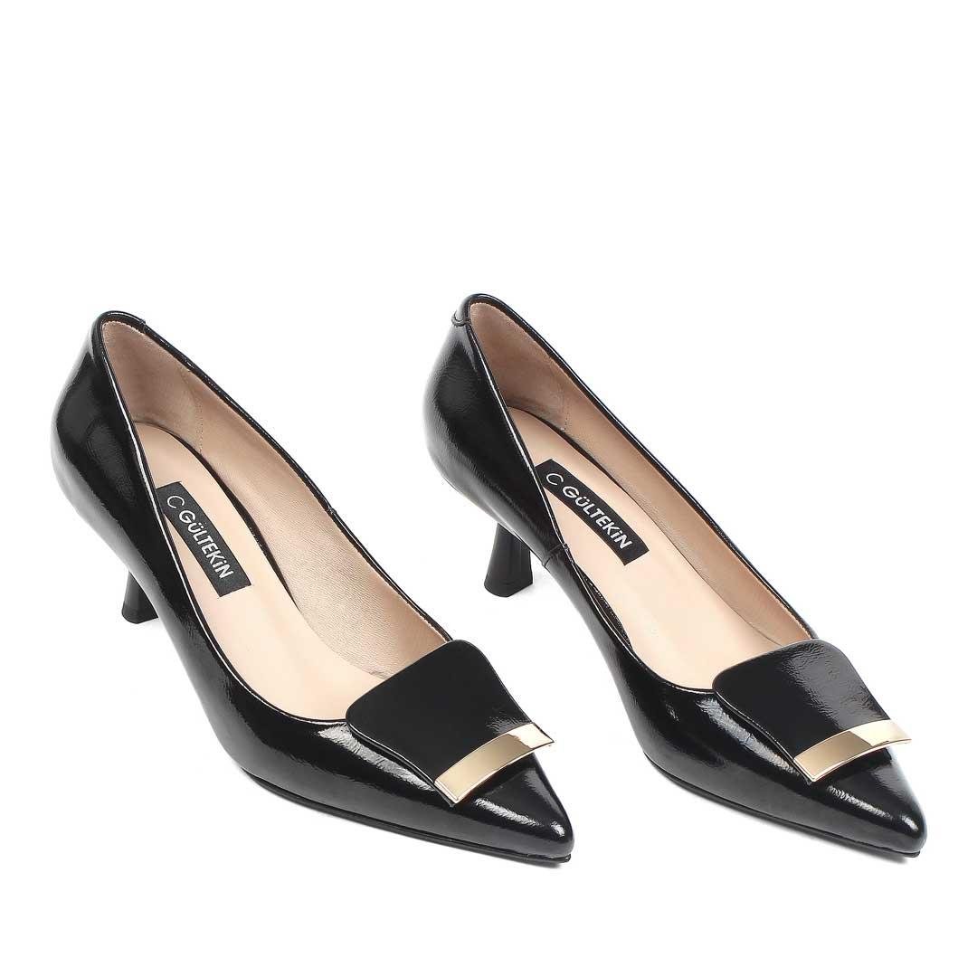 Kadın Siyah İnce Topuklu Rugan Deri Klasik Ayakkabı (773 40404-16541)