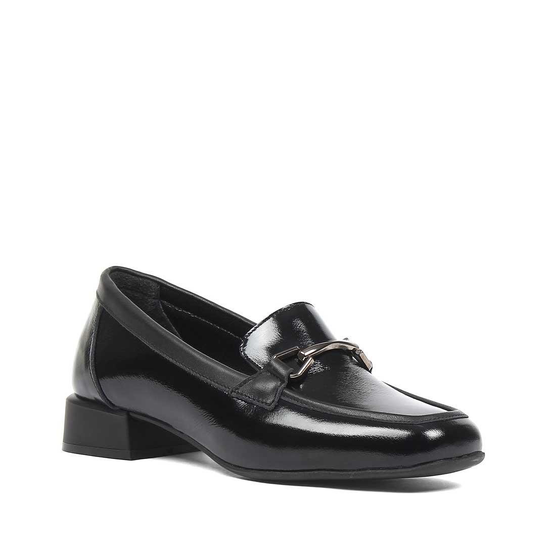 Kadın Siyah Kalın Topuklu Rugan Deri Loafer (494 25836-16541)