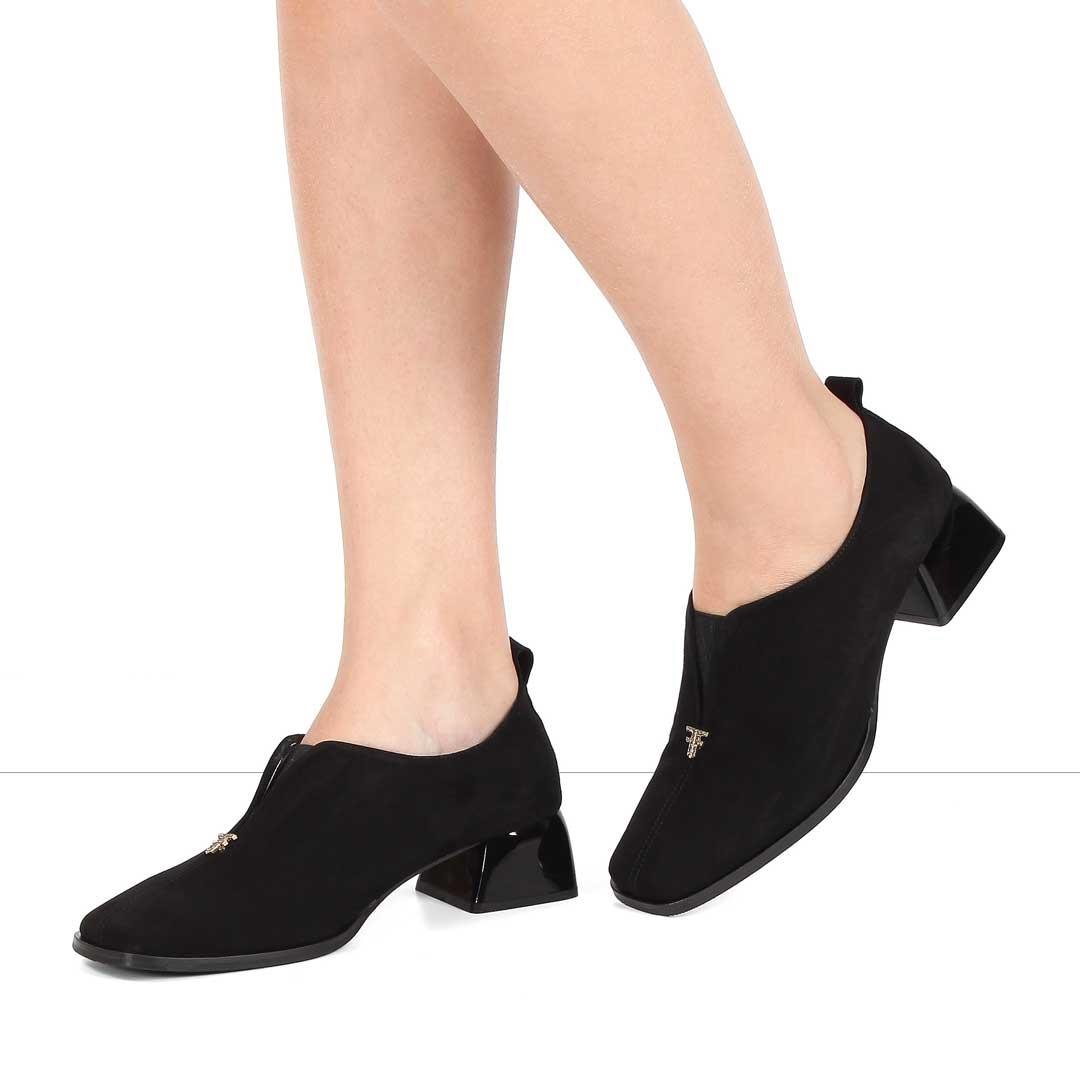 Kadın Siyah Kalın Topuklu Süet Deri Klasik Ayakkabı (768 36010-16641)