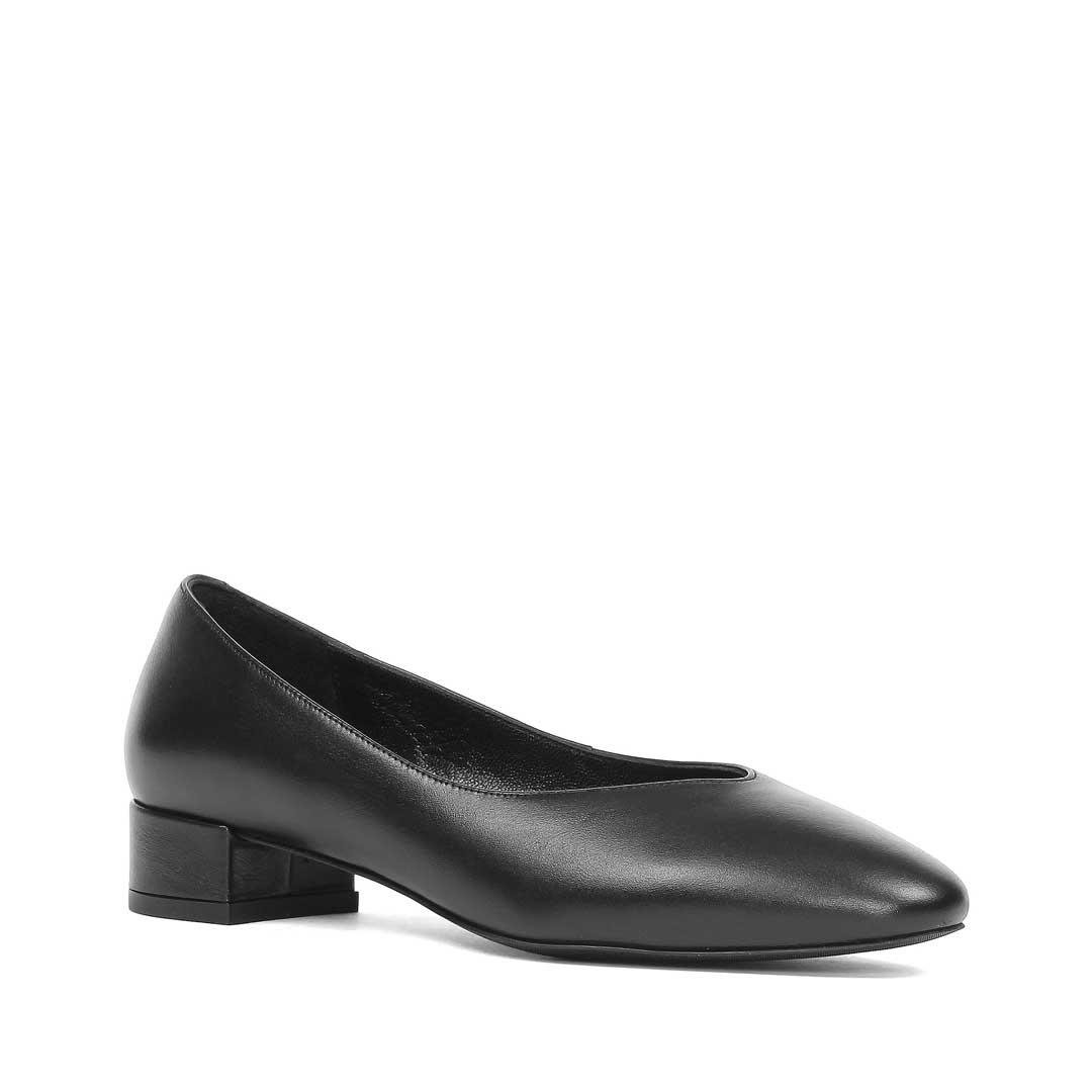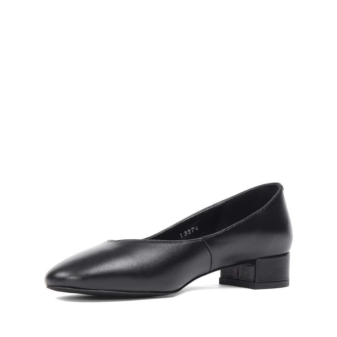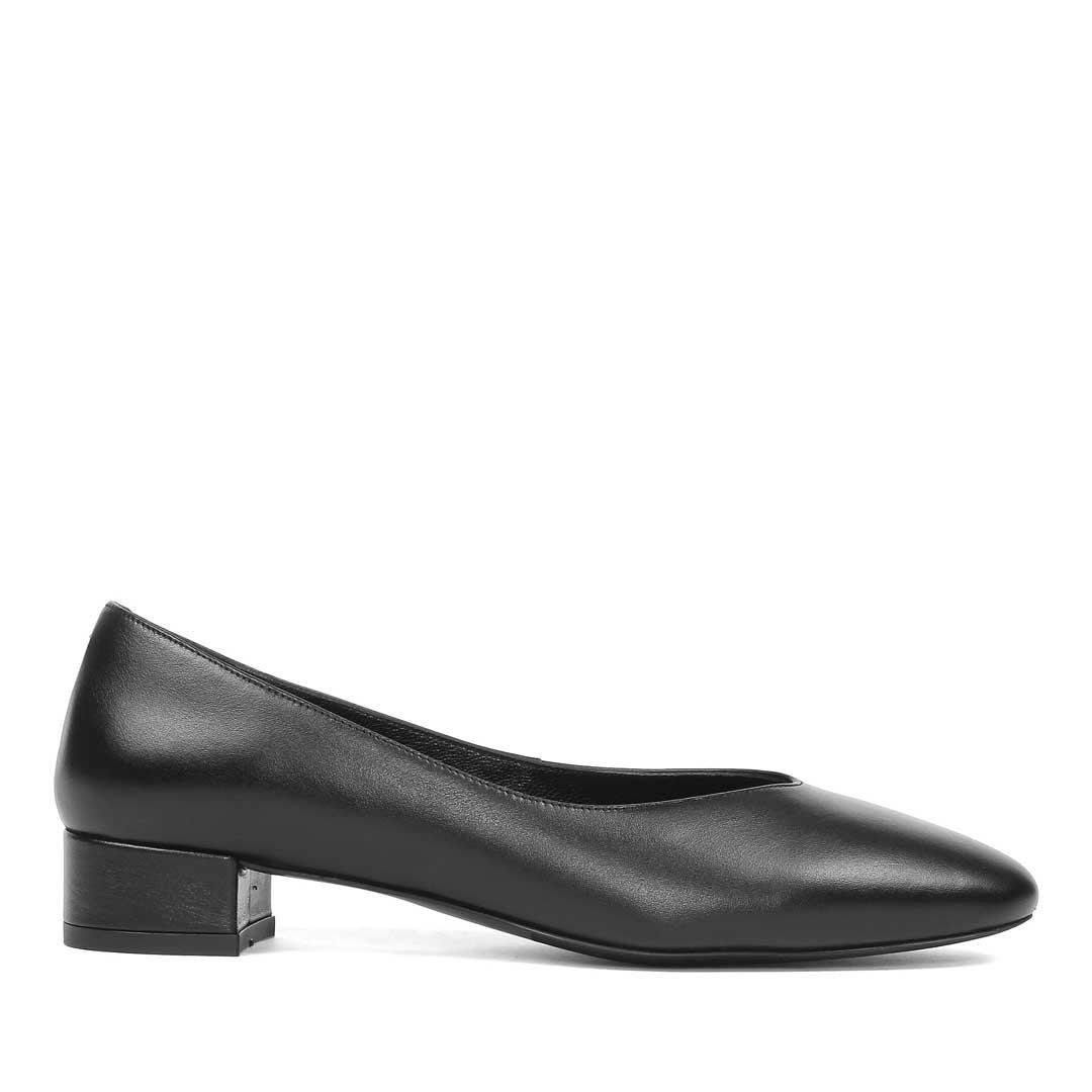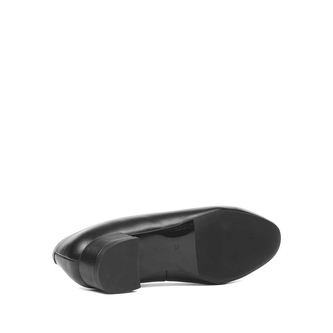 Kadın Siyah Kısa Kalın Topuklu Deri Klasik Ayakkabı (085 29413-1)