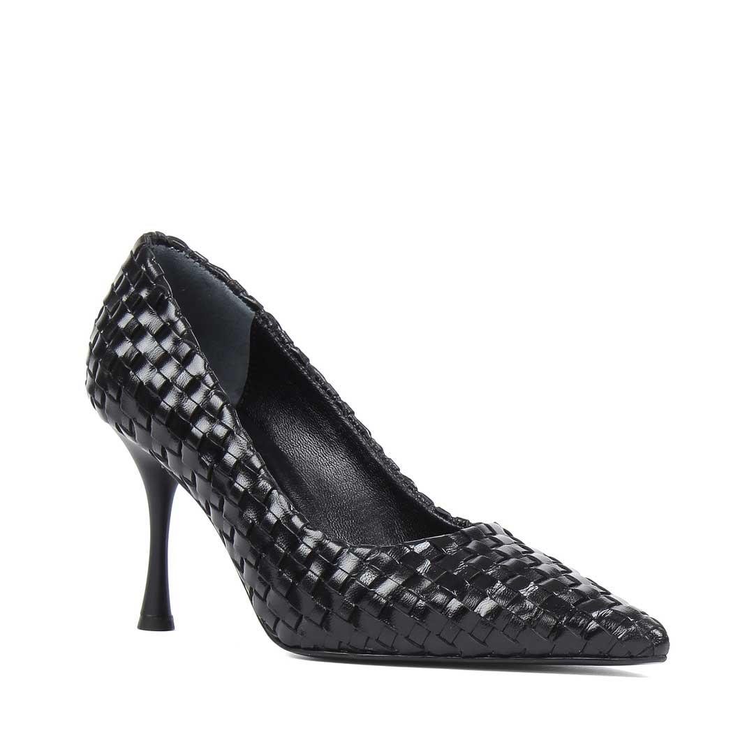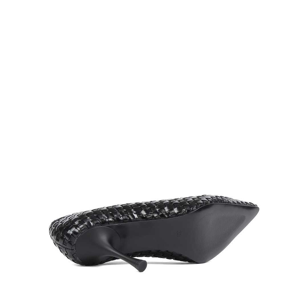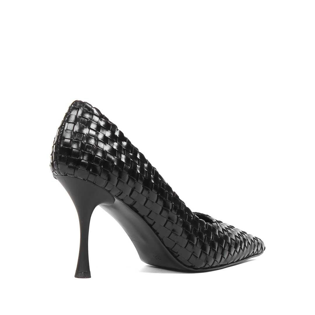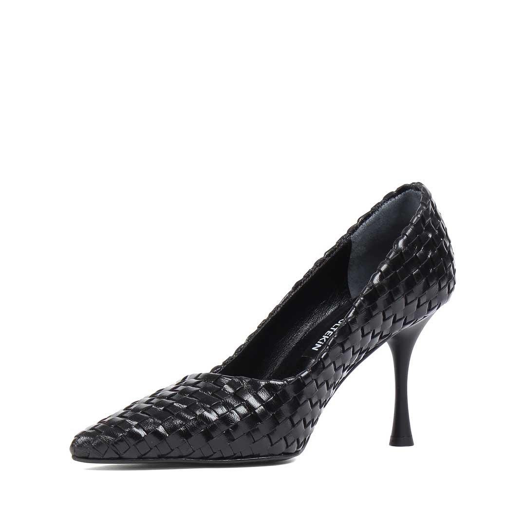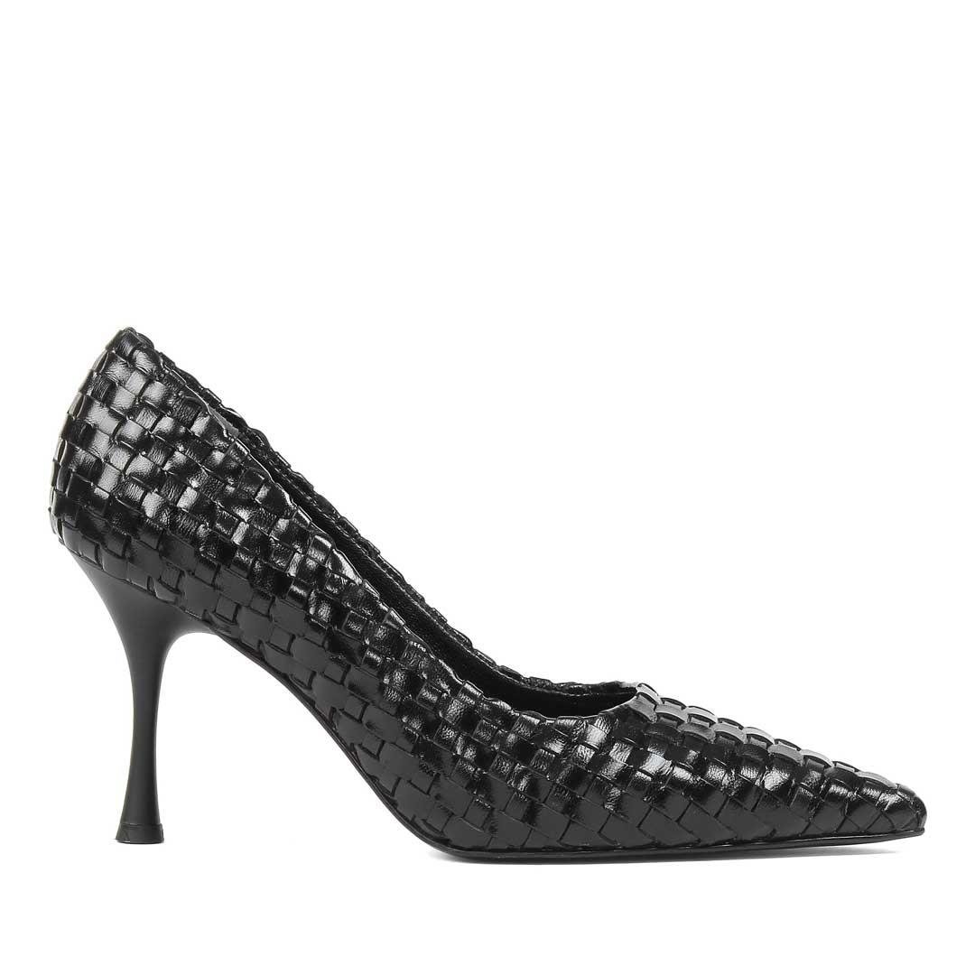 Kadın Siyah Örgü İnce Topuklu Deri Klasik Ayakkabı (283 30534-19763)