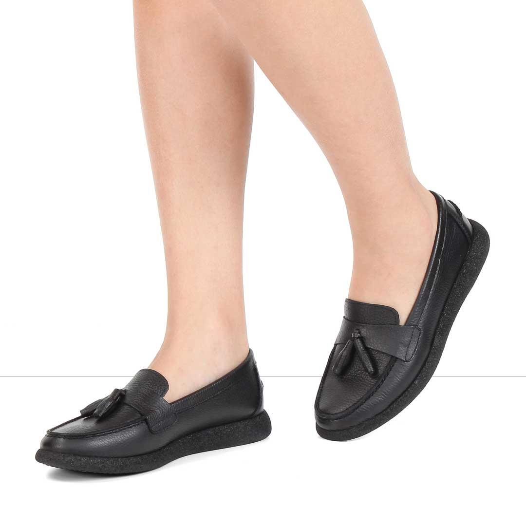 Kadın Siyah Püsküllü Deri Ayakkabı (687 21918-1)