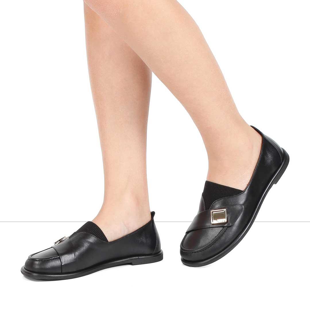 Kadın Siyah Tokalı Deri Loafer (726 28412-1)