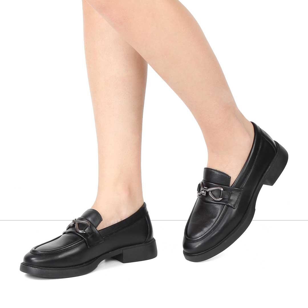 Kadın Siyah Tokalı Deri Loafer (727 28632-1)