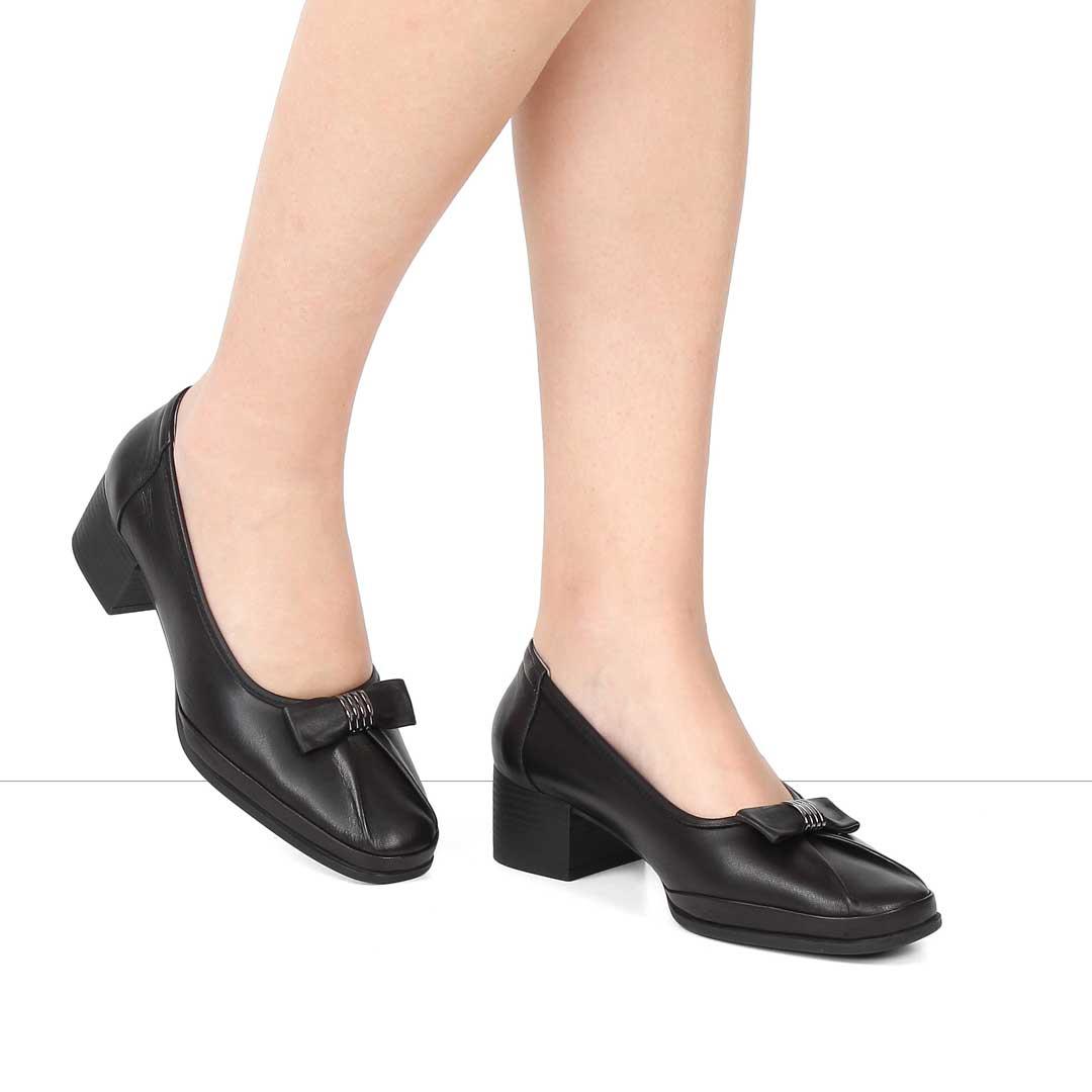 Kadın Siyah Tokalı Kalın Topuklu Deri Klasik Ayakkabı (563 20399-1)