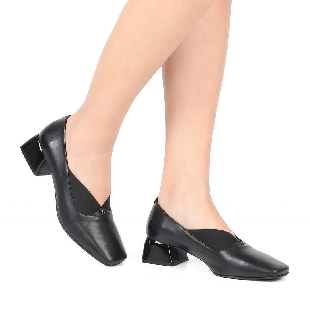 Kadın Siyah Tokalı Kalın Topuklu Deri Klasik Ayakkabı (768 36008-1)