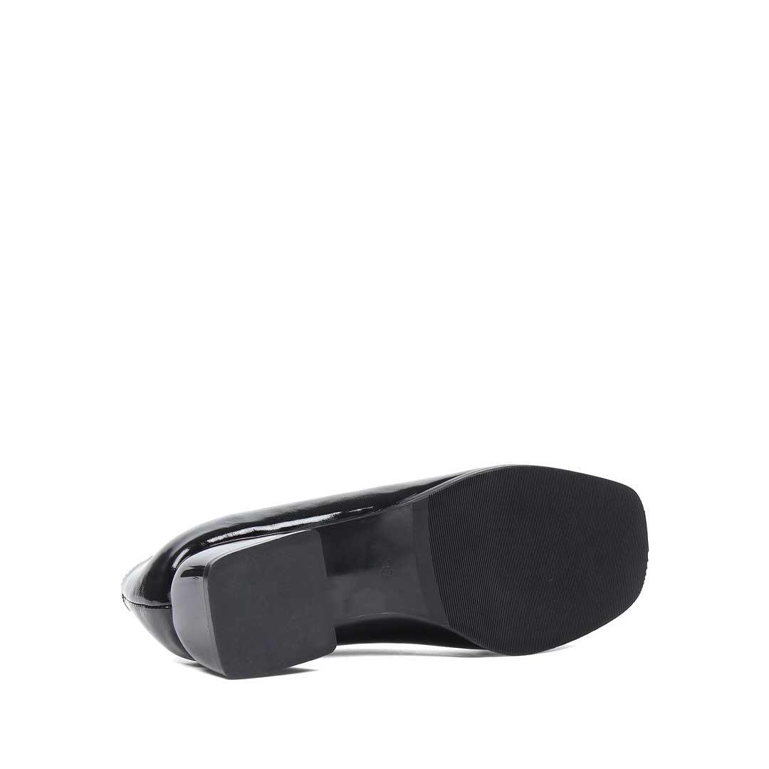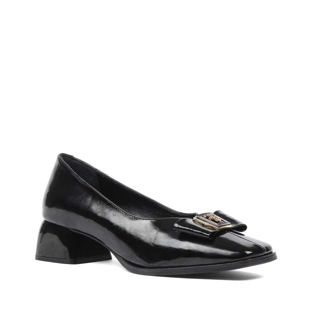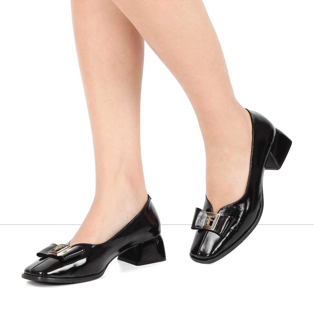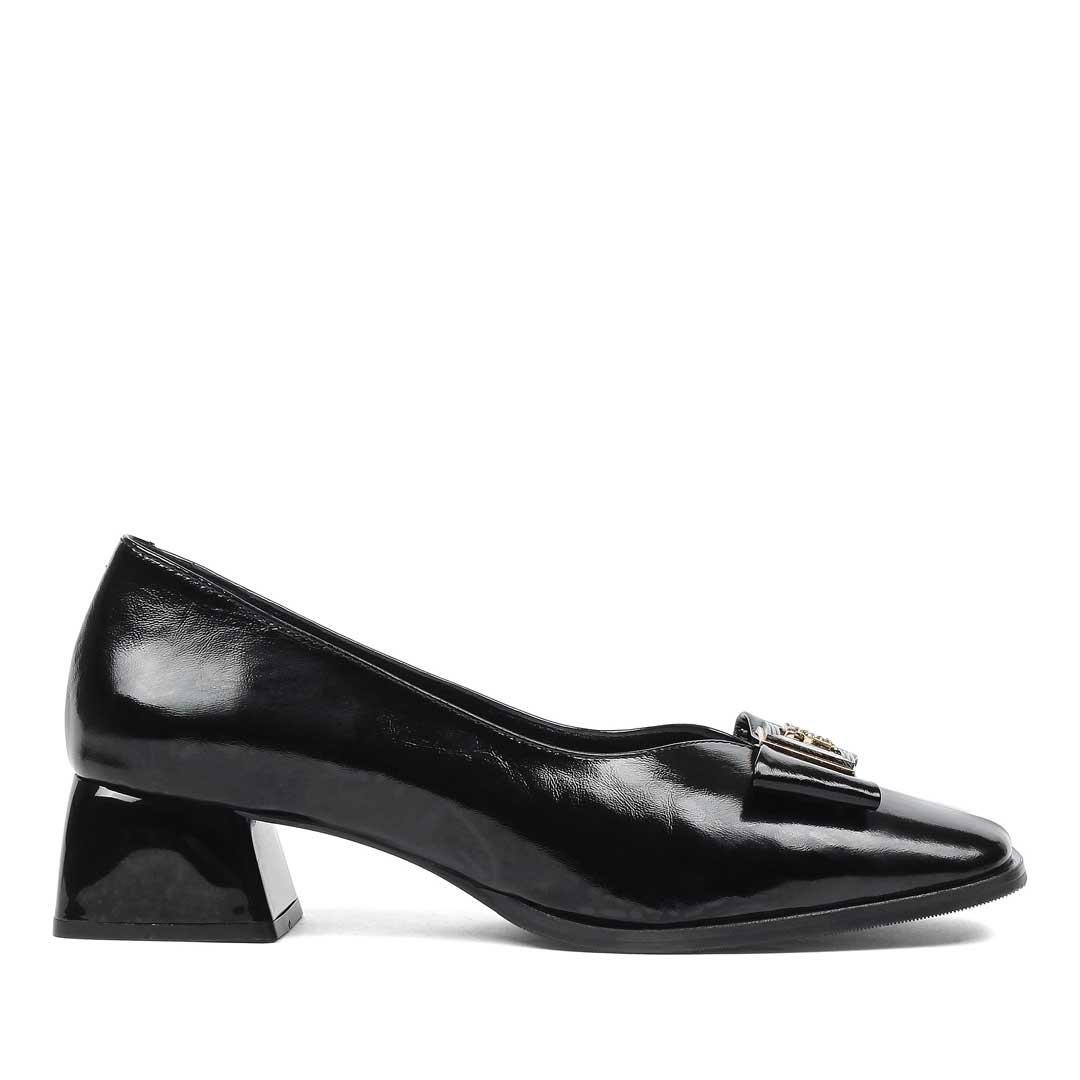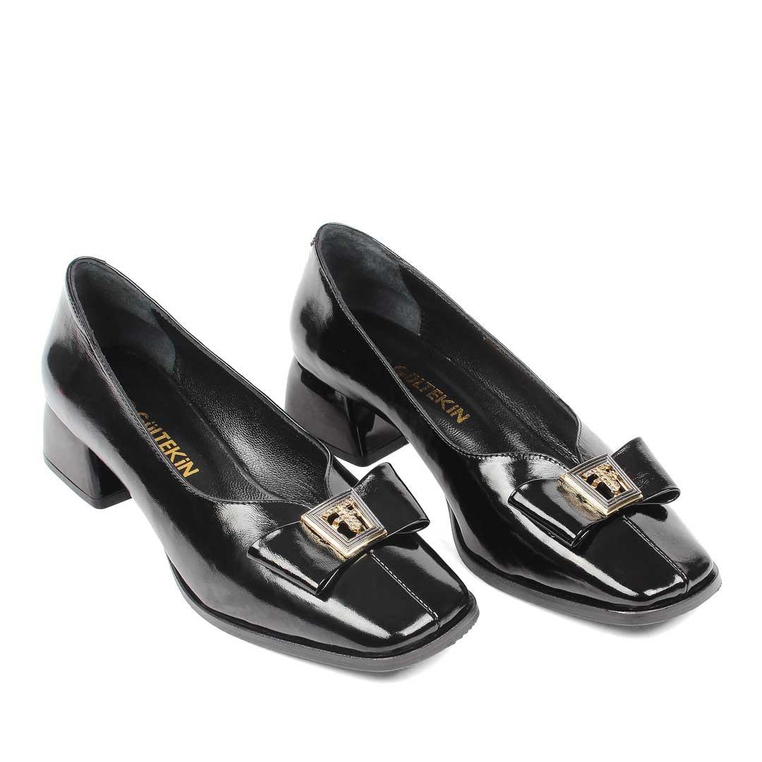 Kadın Siyah Tokalı Kalın Topuklu Rugan Deri Klasik Ayakkabı (768 36009-16541)