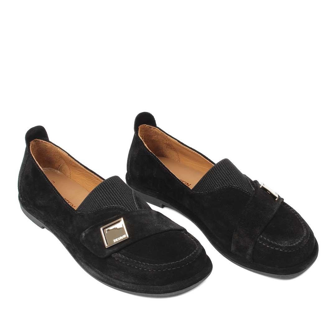 Kadın Siyah Tokalı Süet Deri Loafer (726 28412-16641)