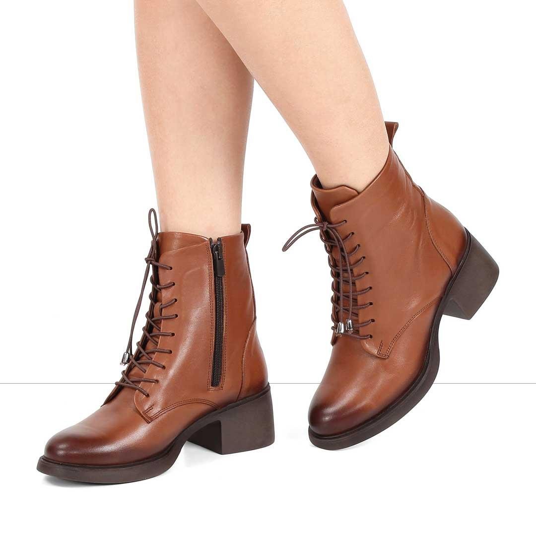 Kadın Taba Bağcıklı Fermuarlı Deri Bot (727 28644-16545)