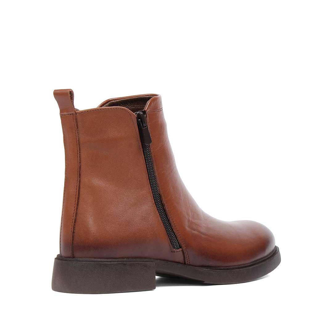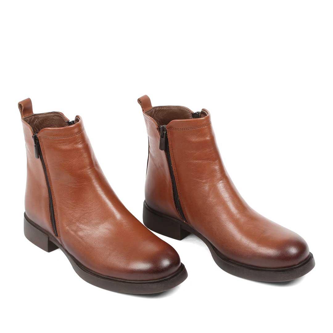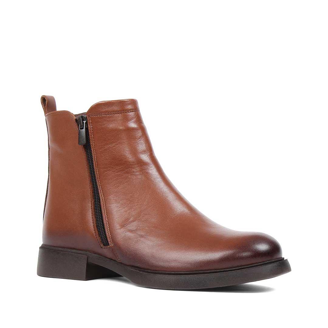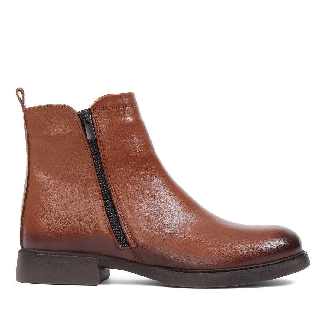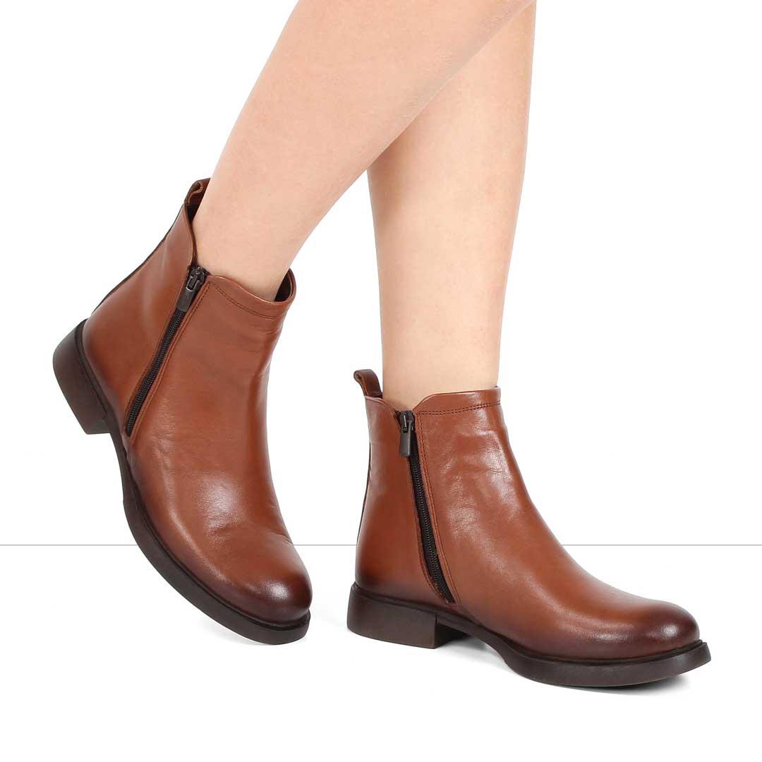 Kadın Taba Çift Fermuarlı Deri Bot (727 28633-16545)