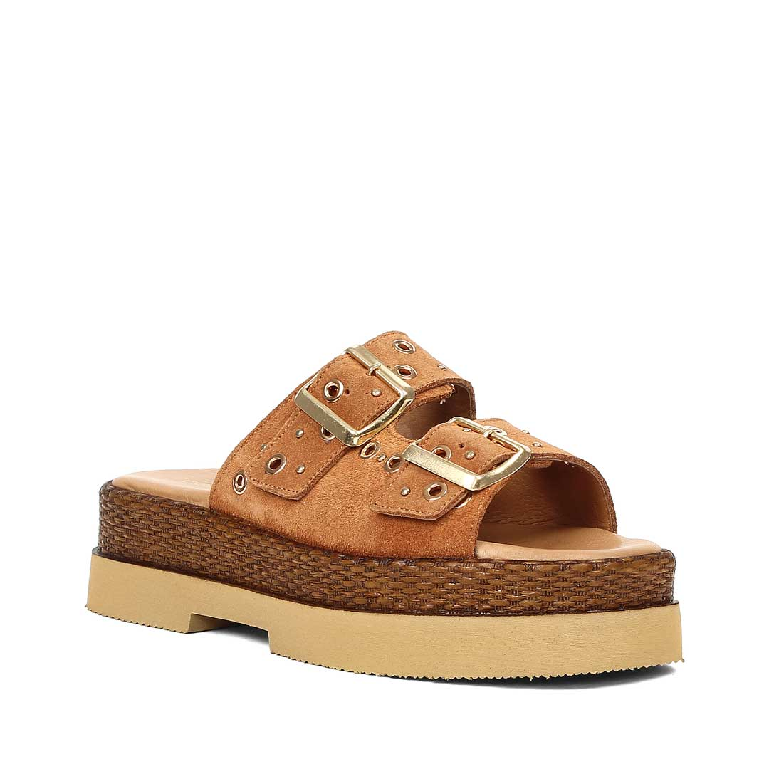 Kadın Taba Çift Tokalı Süet Deri Terlik (559 30005-16955)