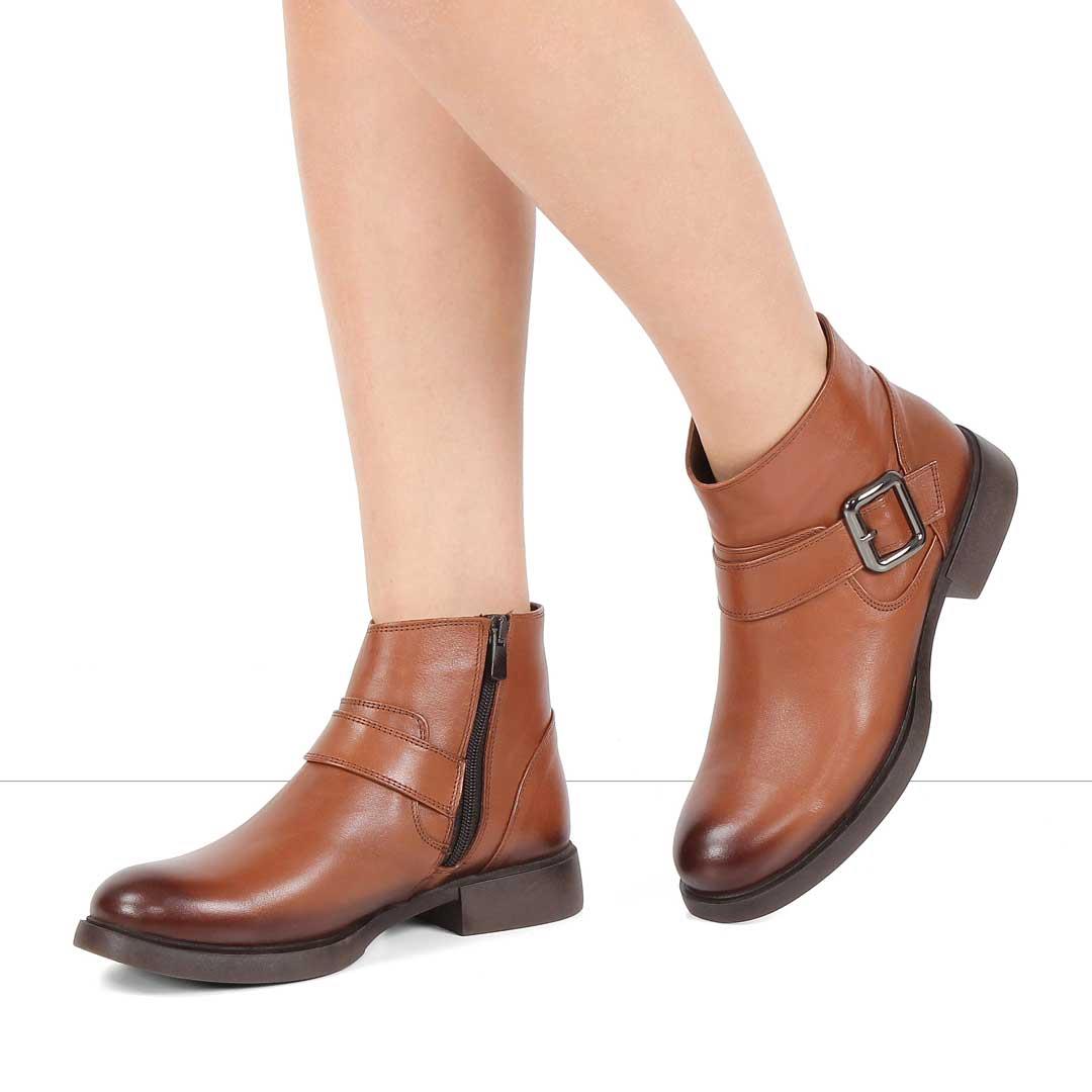 Kadın Taba Fermuarlı Toka Detaylı Deri Bot (727 28643-16545)