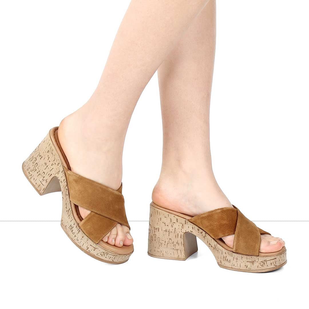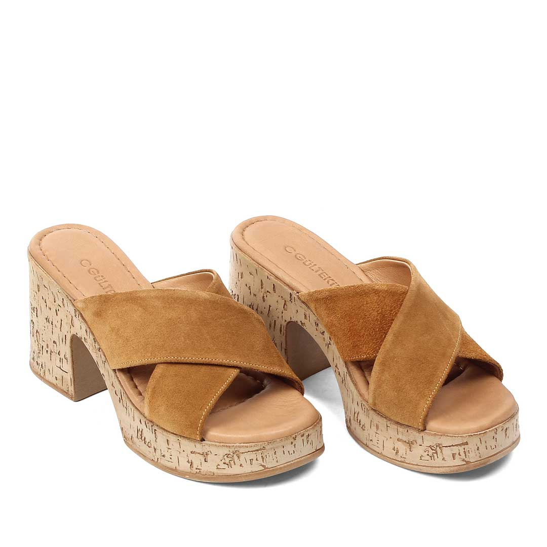 Kadın Taba Kalın Topuklu Süet Deri Terlik (541 23085-16955)