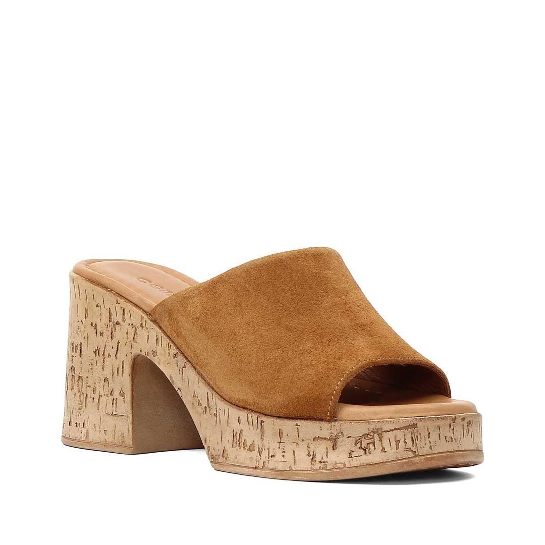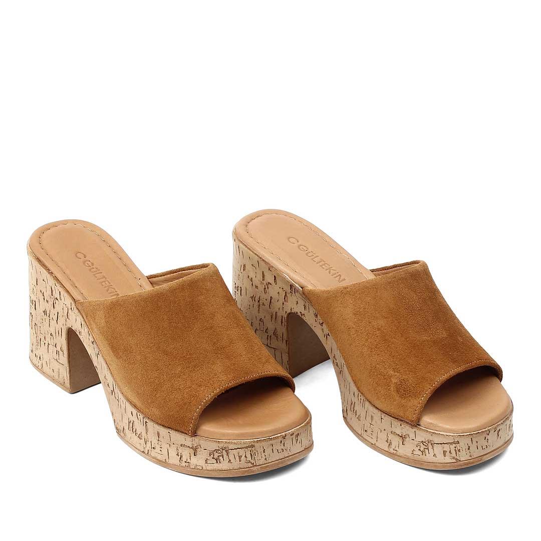 Kadın Taba Yüksek Kalın Topuklu Süet Deri Terlik (541 23083-16955)